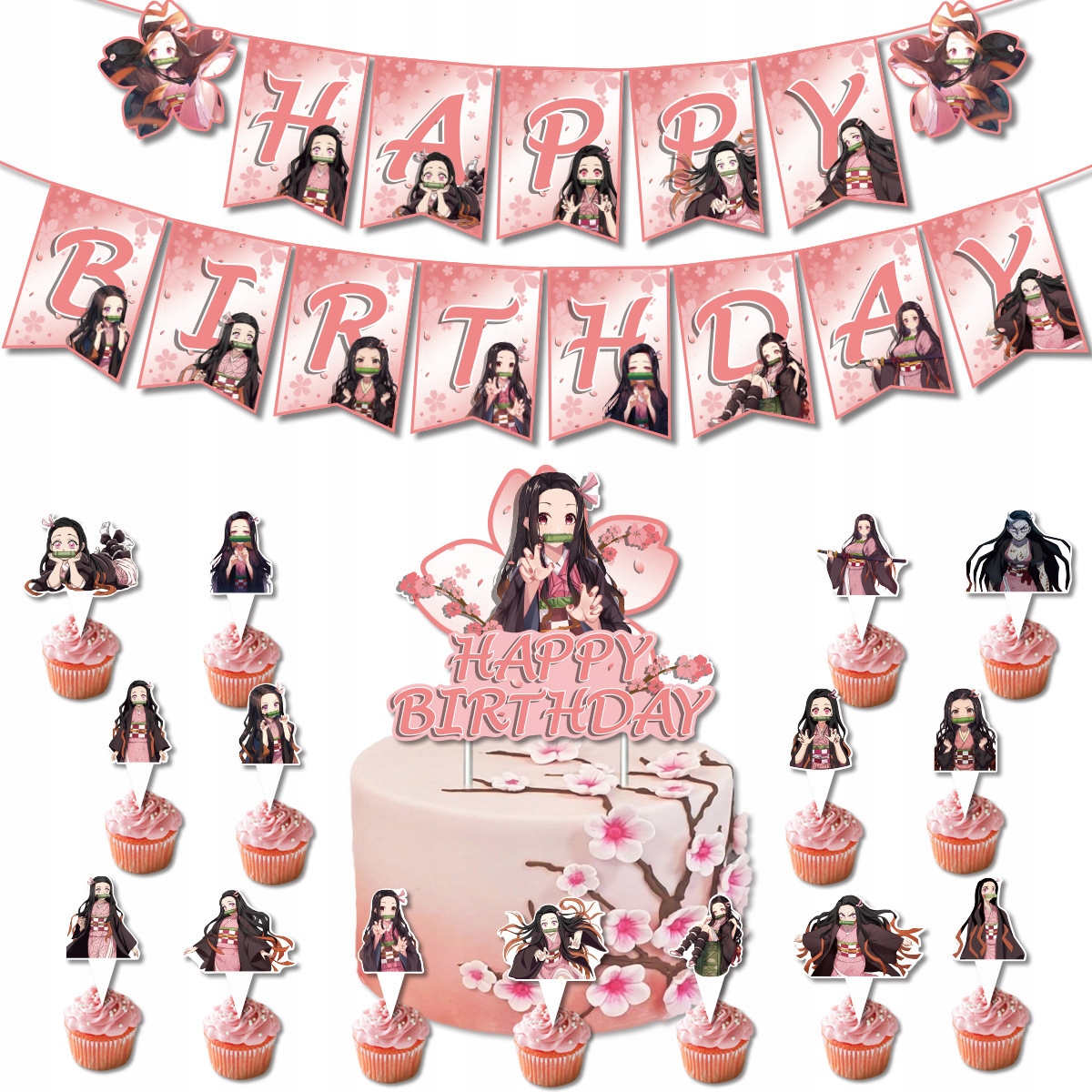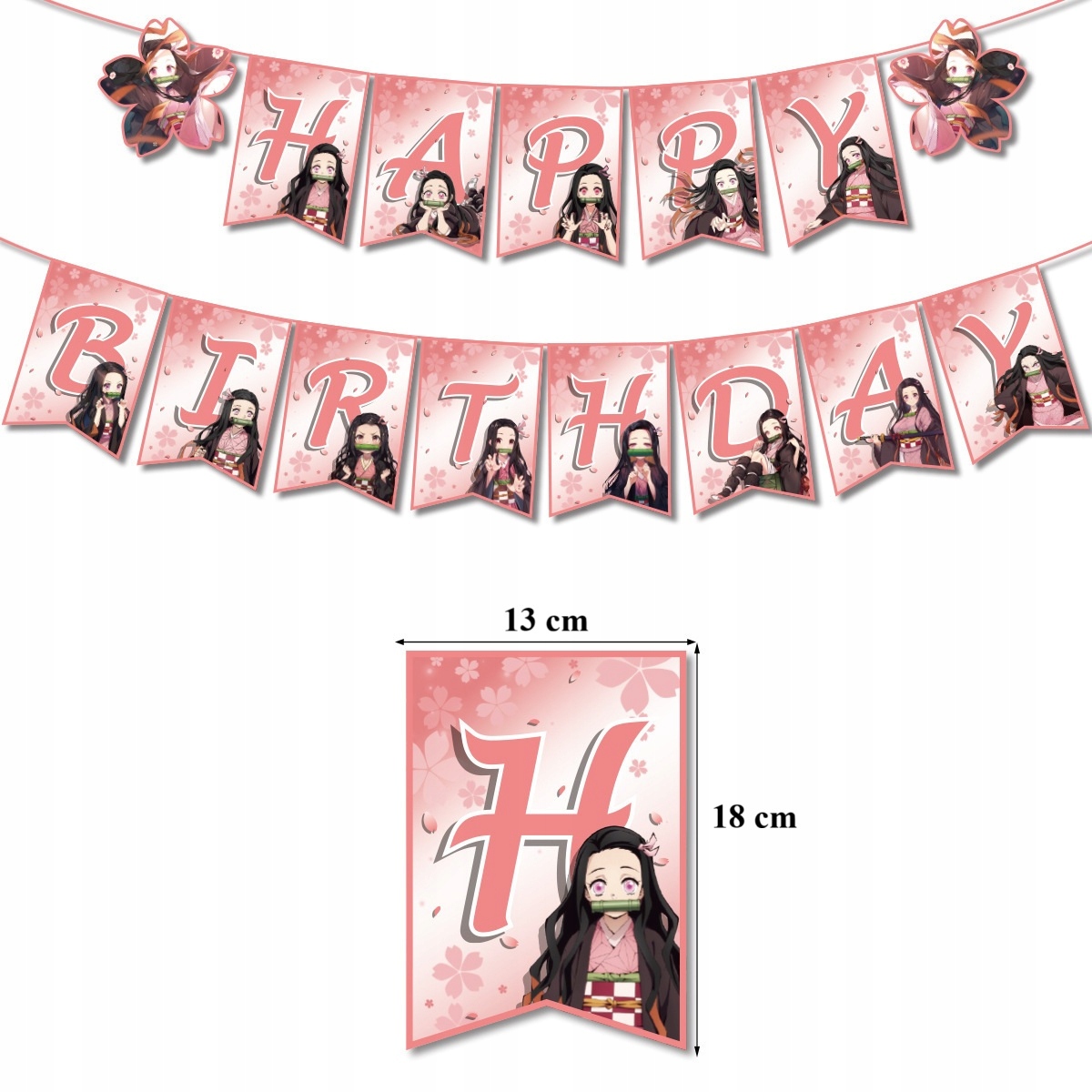 • 1 sztuka girlanda urodzinowa z napisem Happy Birthday – motyw Nezuko Kamado Demon Slayer