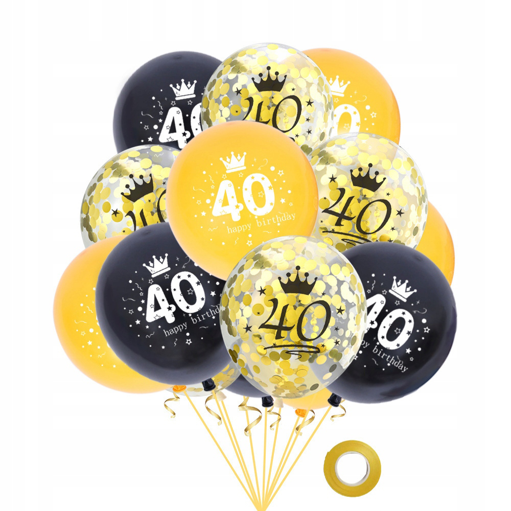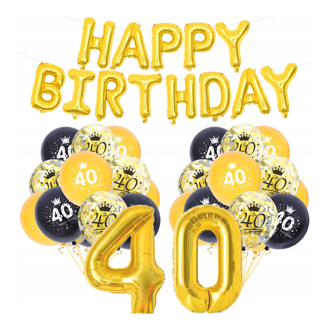 Oro Party zestaw czarno-złotych balonowych dekoracji na 40 urodziny