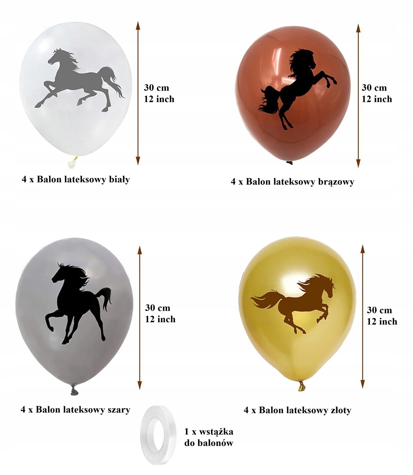 18 balonów lateksowych 30 cm / 12 inch z nadrukiem Koni: