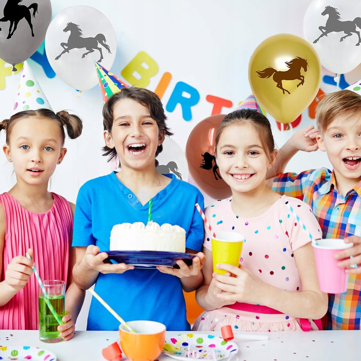 Zestaw balonów urodzinowych z motywem koni to idealna dekoracja na przyjęcie dla miłośników zwierząt i jeździectwa! Urocze wzory biegnącego konia w pastelowych kolorach dodadzą elegancji i radości każdej uroczystości.