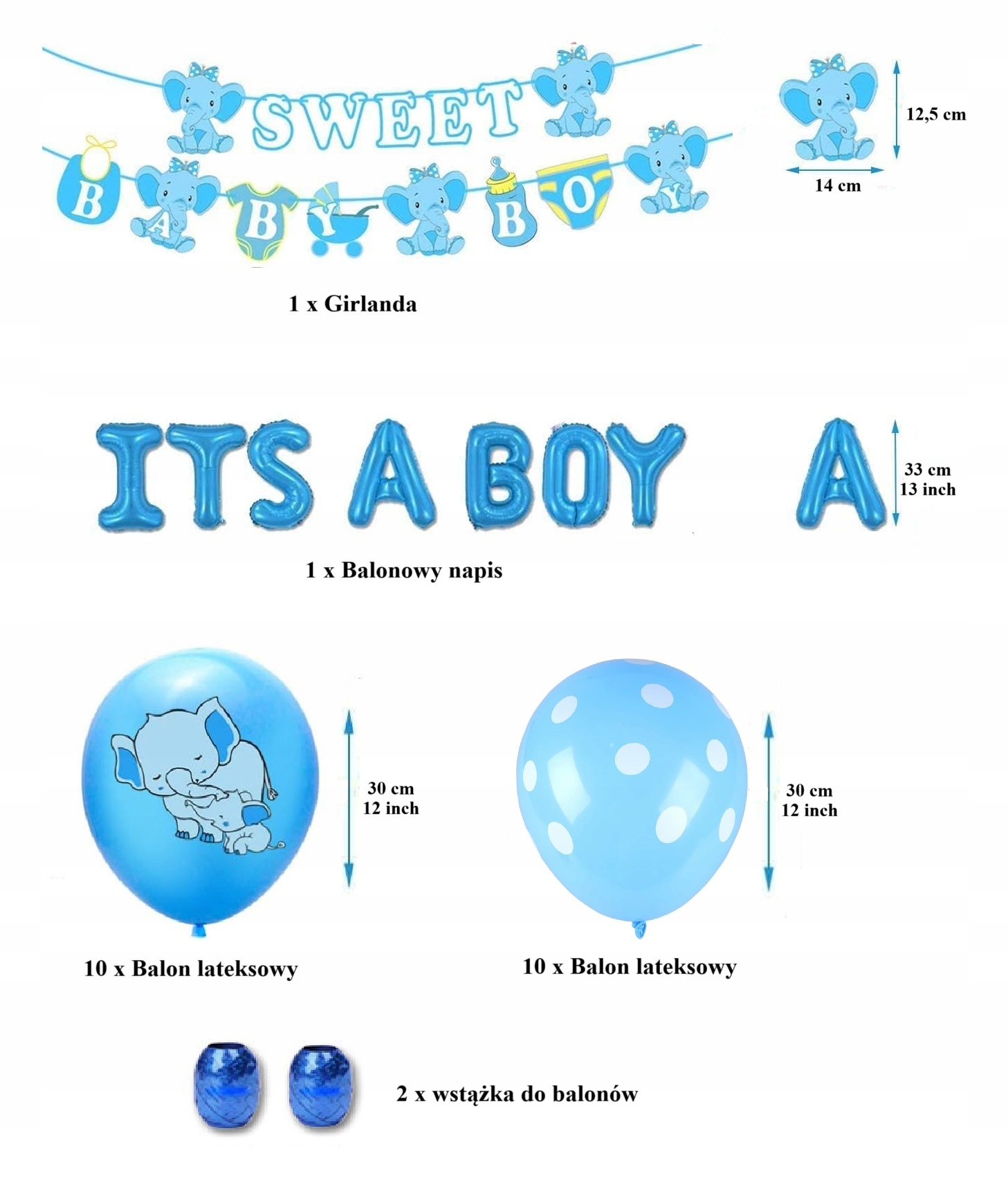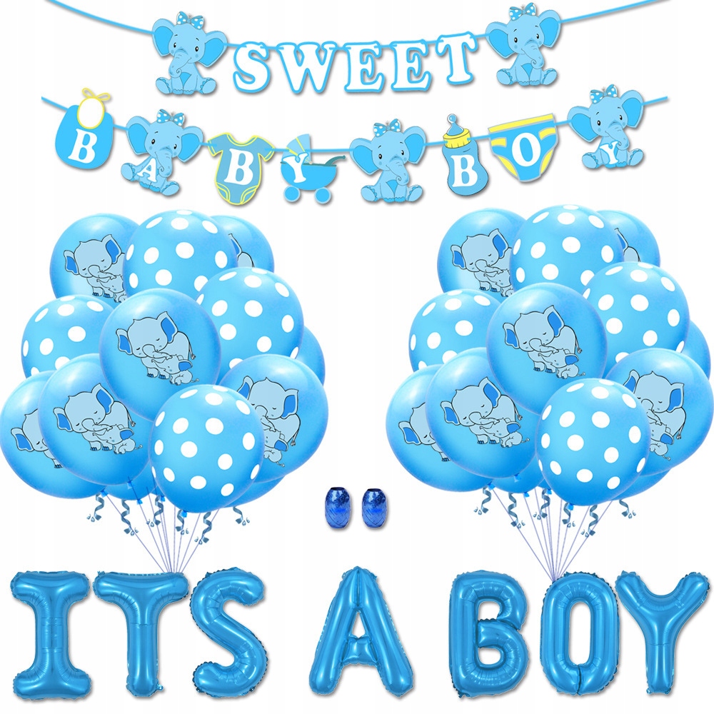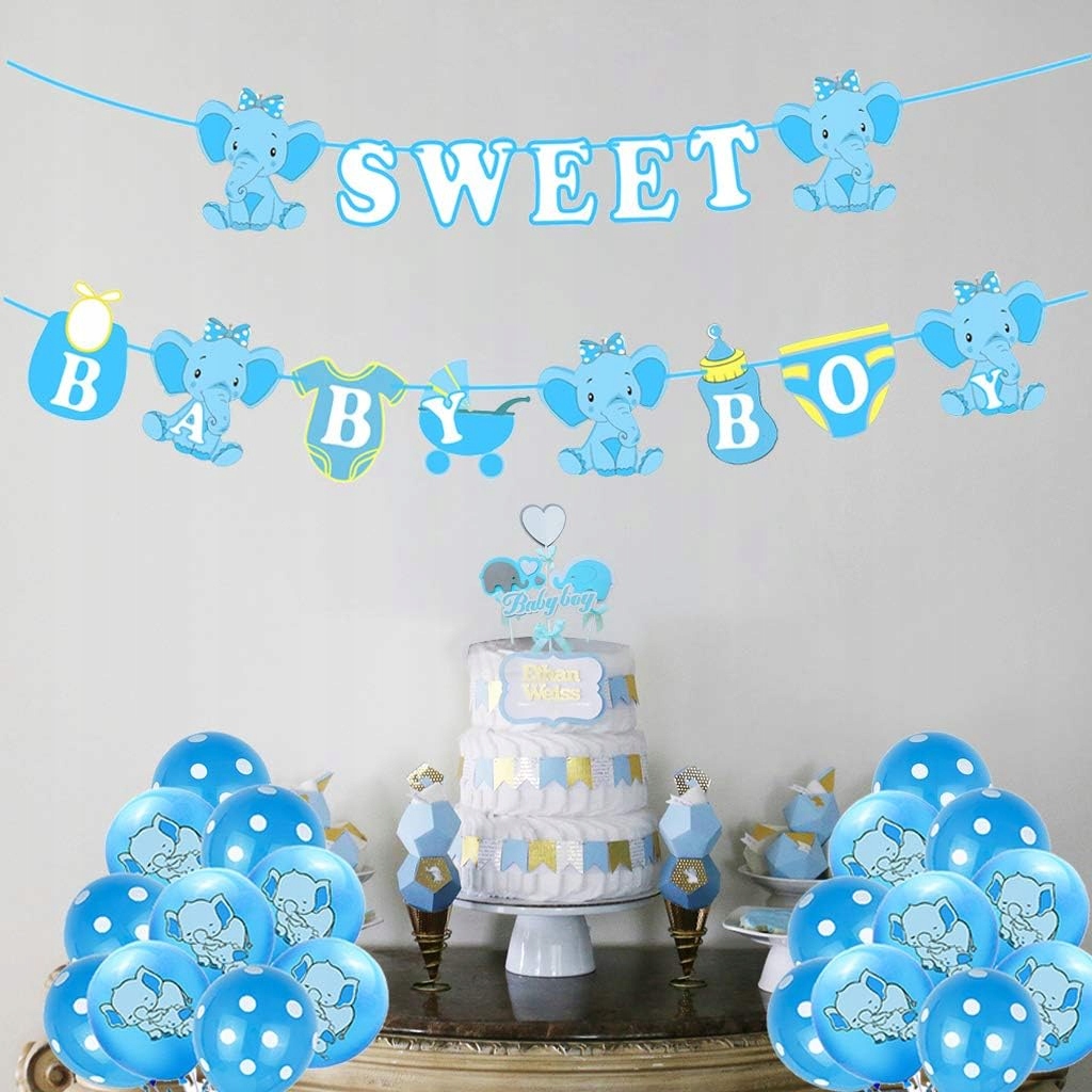 Zestaw dekoracji Oro Party w odcieniach niebieskiego i z uroczym motywem słoników to idealna oprawa na baby shower lub powitanie maluszka. Wszystko dopasowane kolorystycznie i tematycznie – gotowe do użycia!