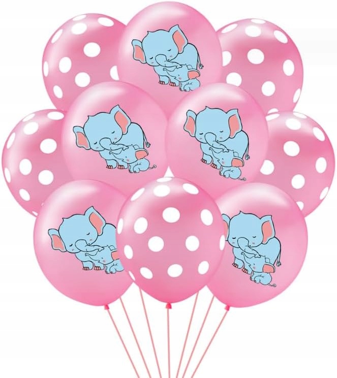10 x balonów lateksowych – różowe z nadrukiem mama słonik i dziecko słonik, rozmiar 30 cm / 12″