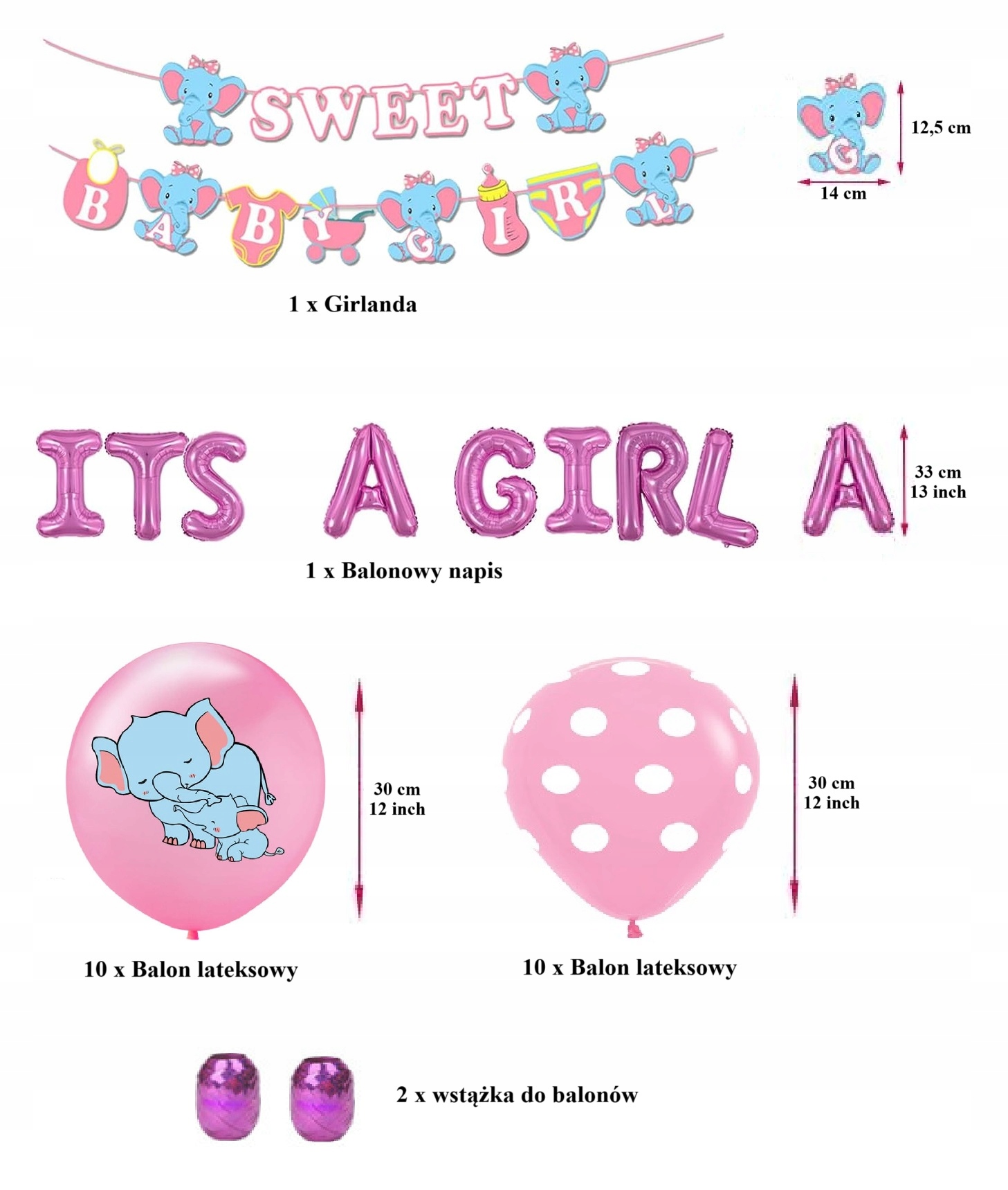 Oro Party Zestaw dekoracji balonowych na Baby Shower It’s a Girl + Girlanda