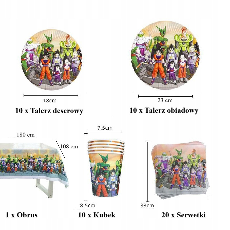 Oro Party Zestaw Dekoracji na stół Dragon Ball talerzyki kubki serwetki. Doskonały wybór dla osób, które chcą zorganizować niezapomniane przyjęcie w klimacie Dragon Ball. 🐉🎉