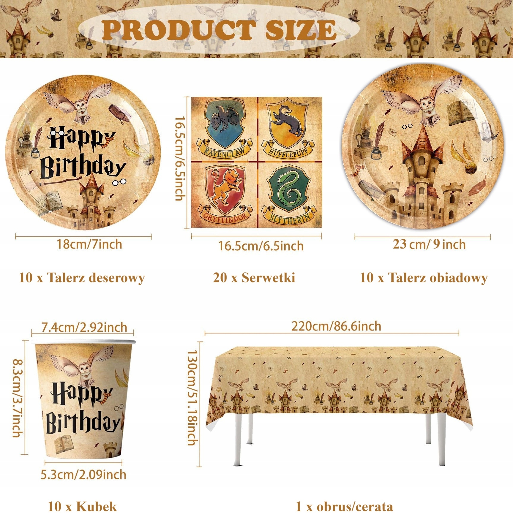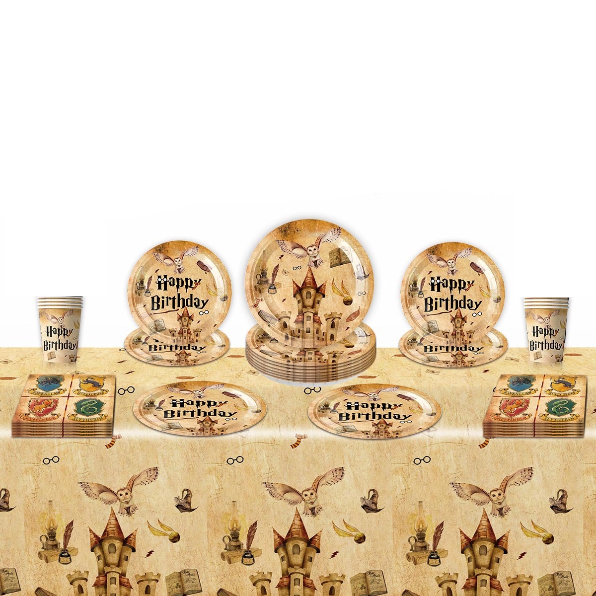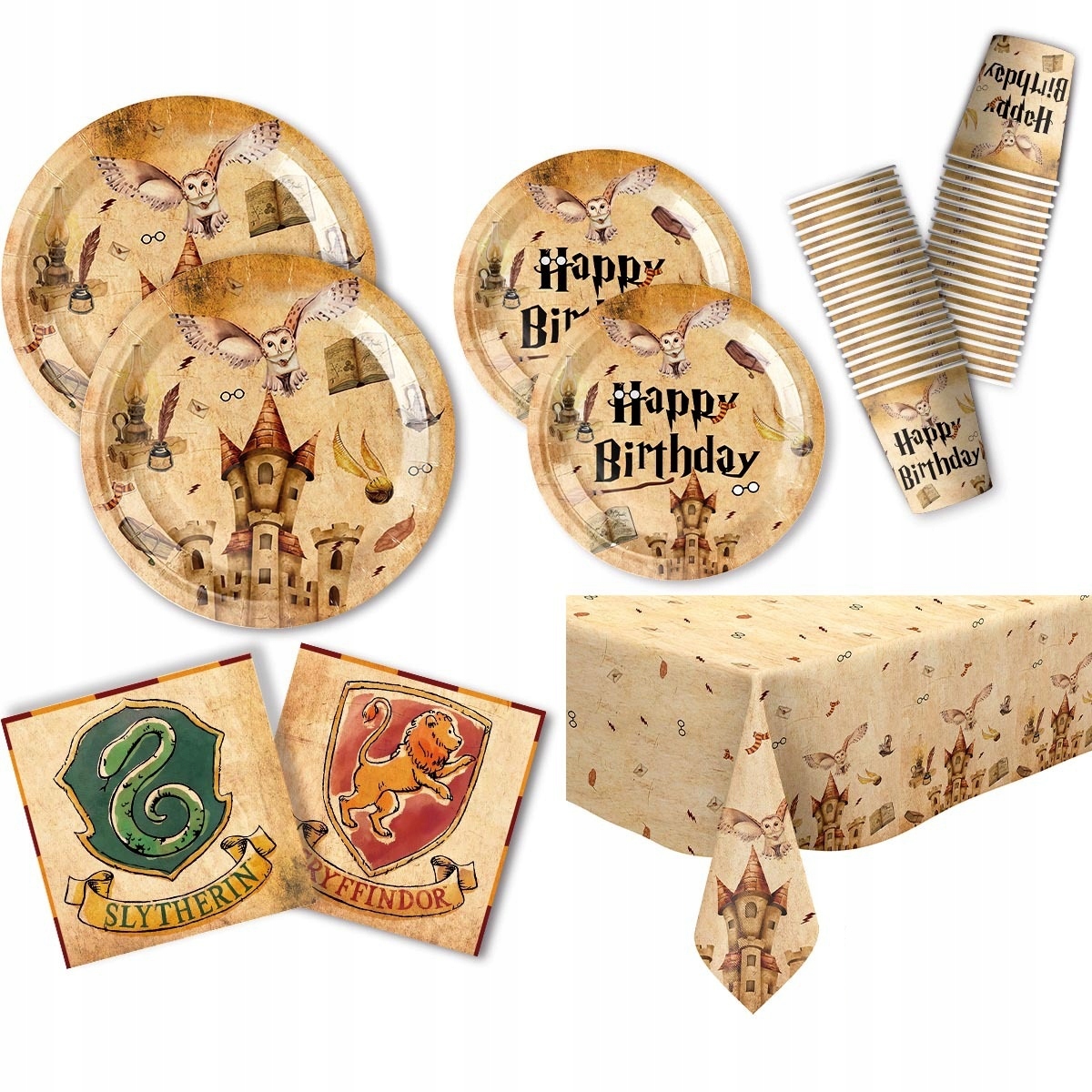 Kolorowe talerze, kubki, serwetki i obrus stworzą wyjątkowy klimat przygody, który zachwyci każdego fana Harrego Pottera – małego i dużego!