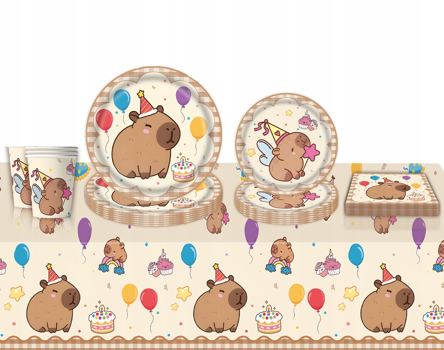 Stwórz przytulny i radosny klimat z Oro Party Zestaw Dekoracji na stół Kapibara Kapibary!