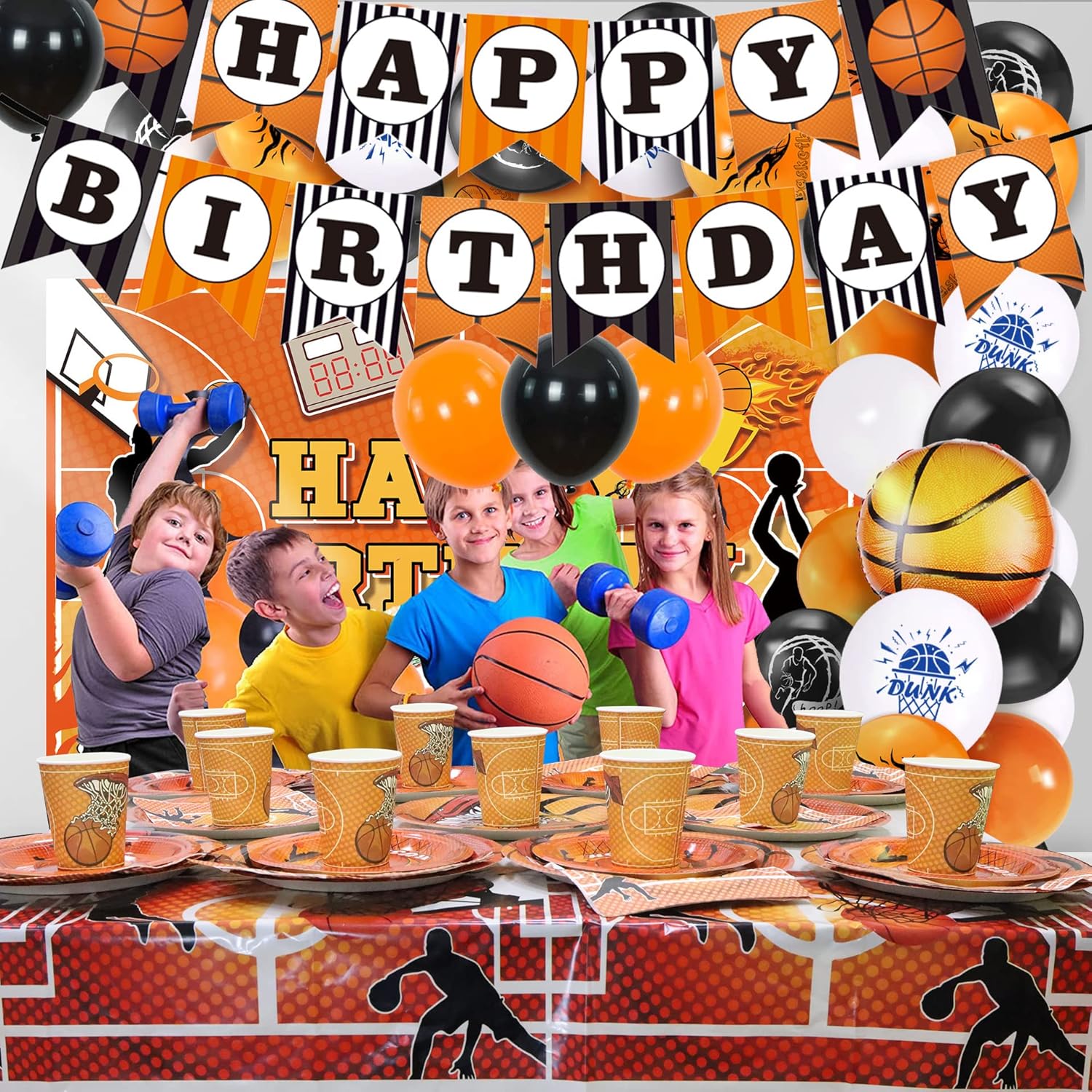 Zaproś gości do gry i stwórz niezapomnianą atmosferę pełną sportowych emocji z Oro Party – Zestawem Koszykówka!