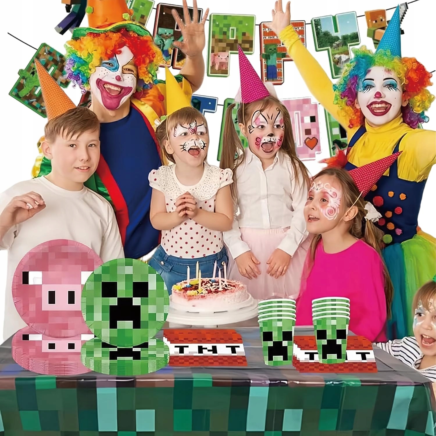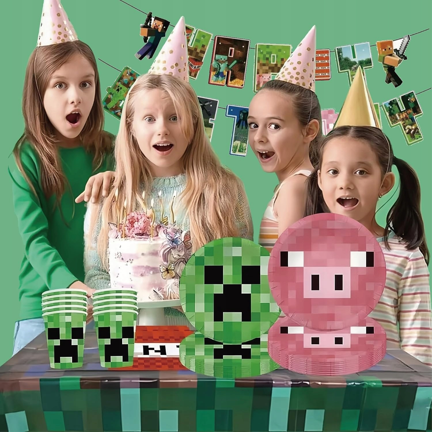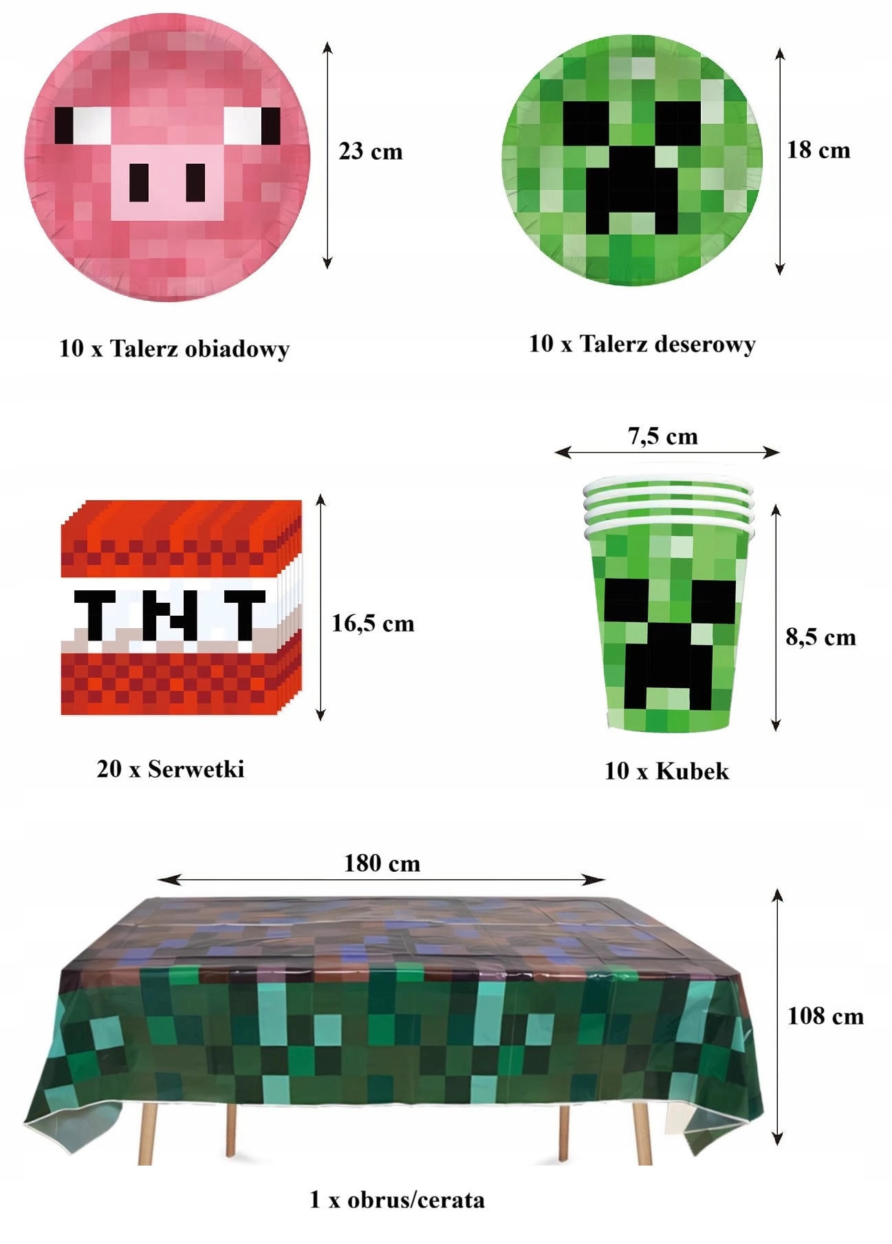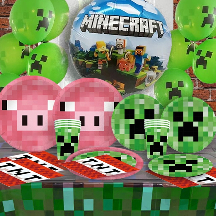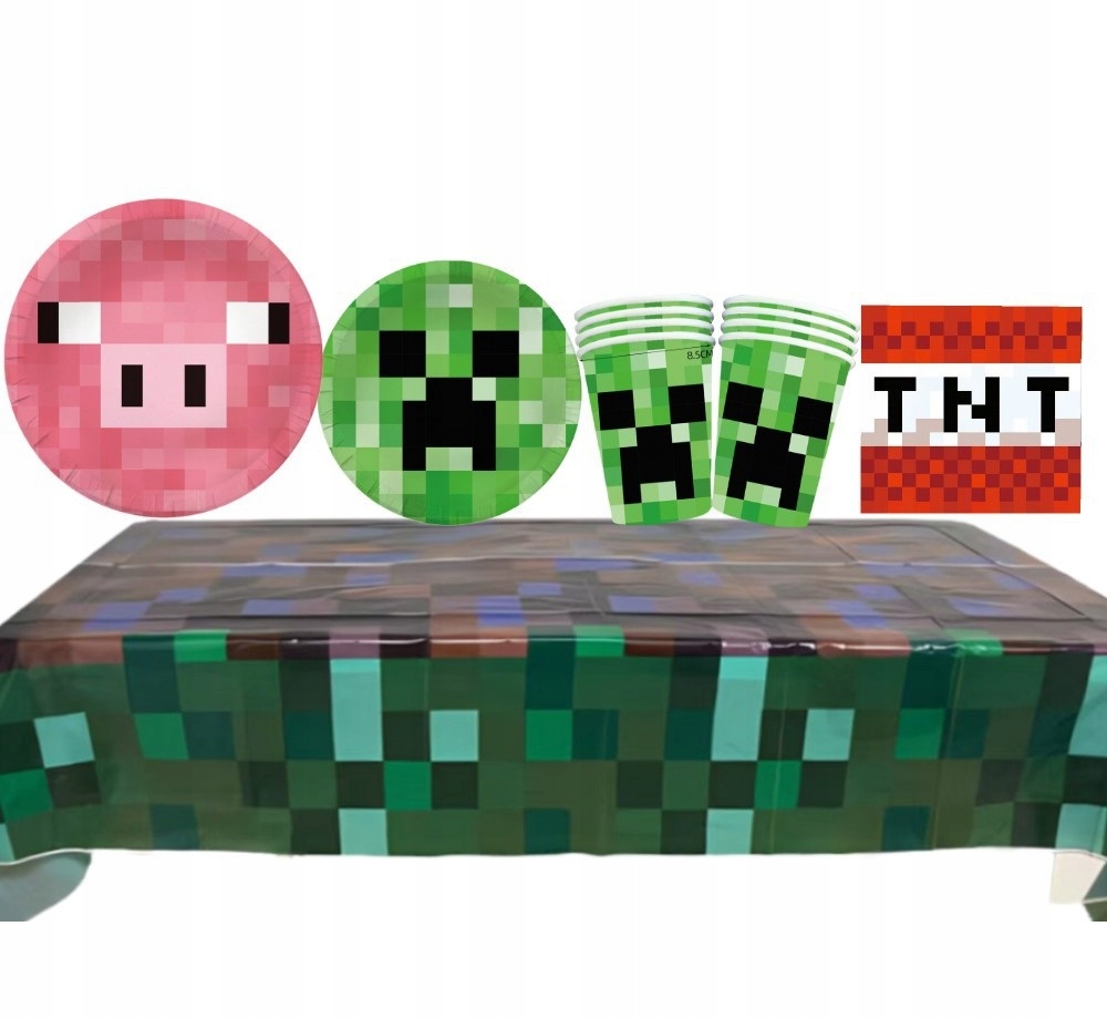 Oro Party Zestaw Dekoracji na stół Minecraft talerzyki, kubki, serwetki, obrus