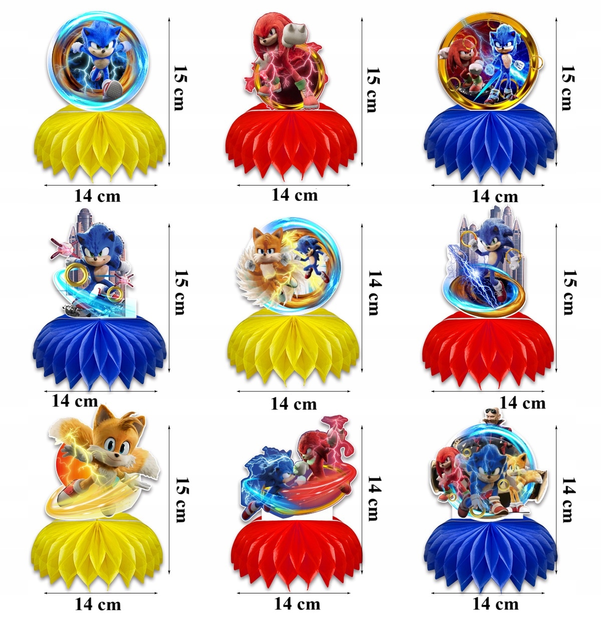 - 9 kolorowych dekoracji papierowych z motywem Sonic