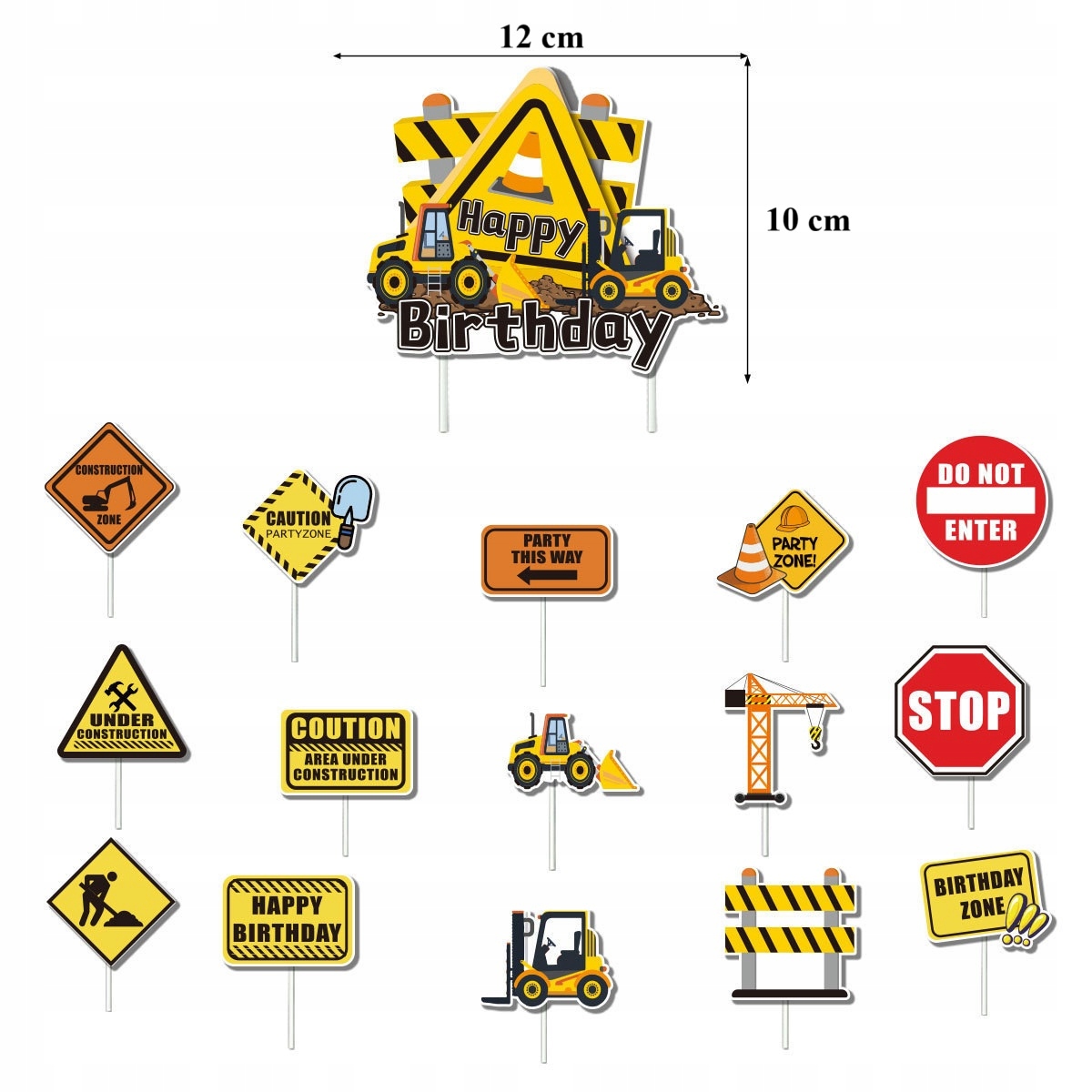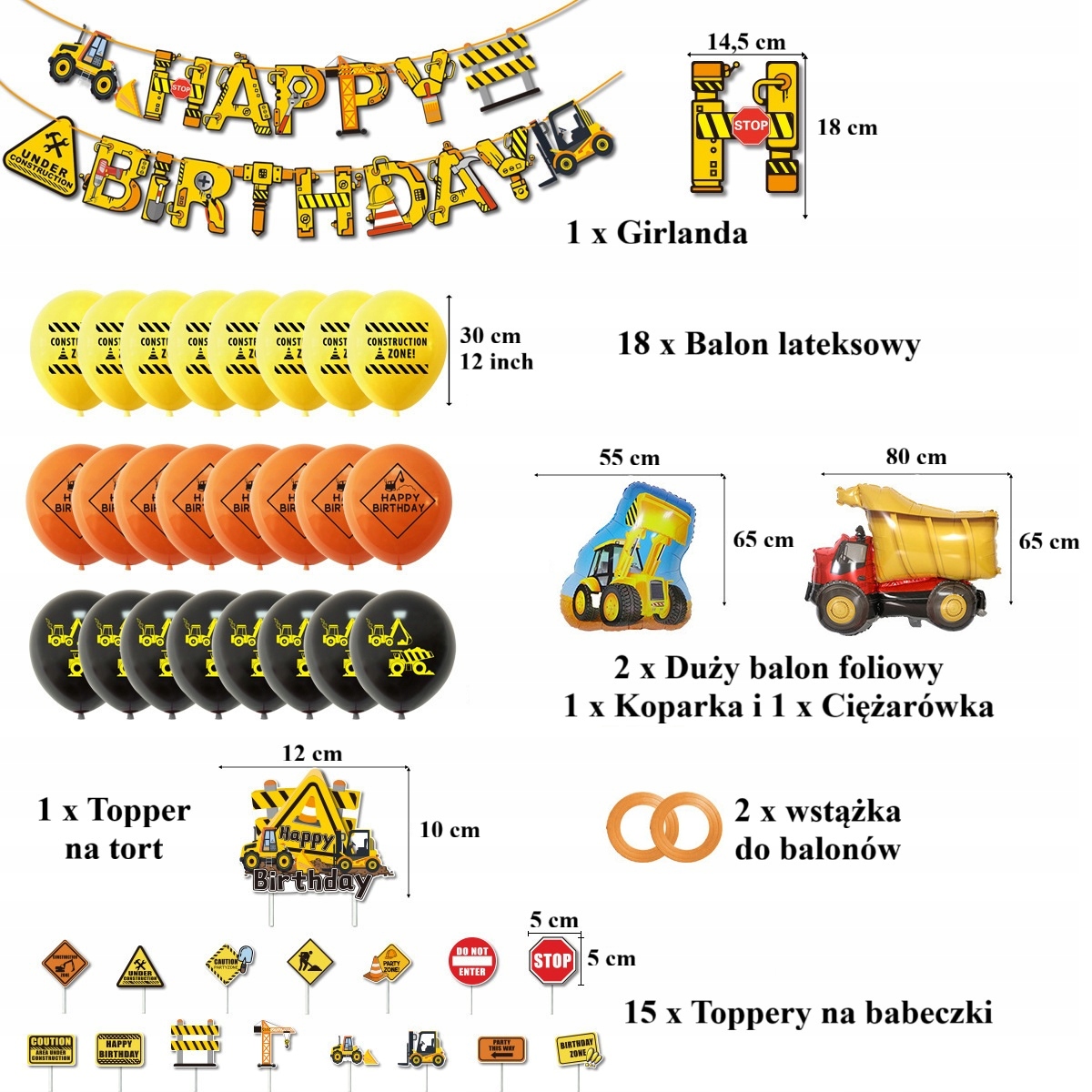 Oro Party Zestaw XL balonowych dekoracji urodzinowych Budowniczy Koparka + Girlanda + Topper na tort i toppery na babeczki
