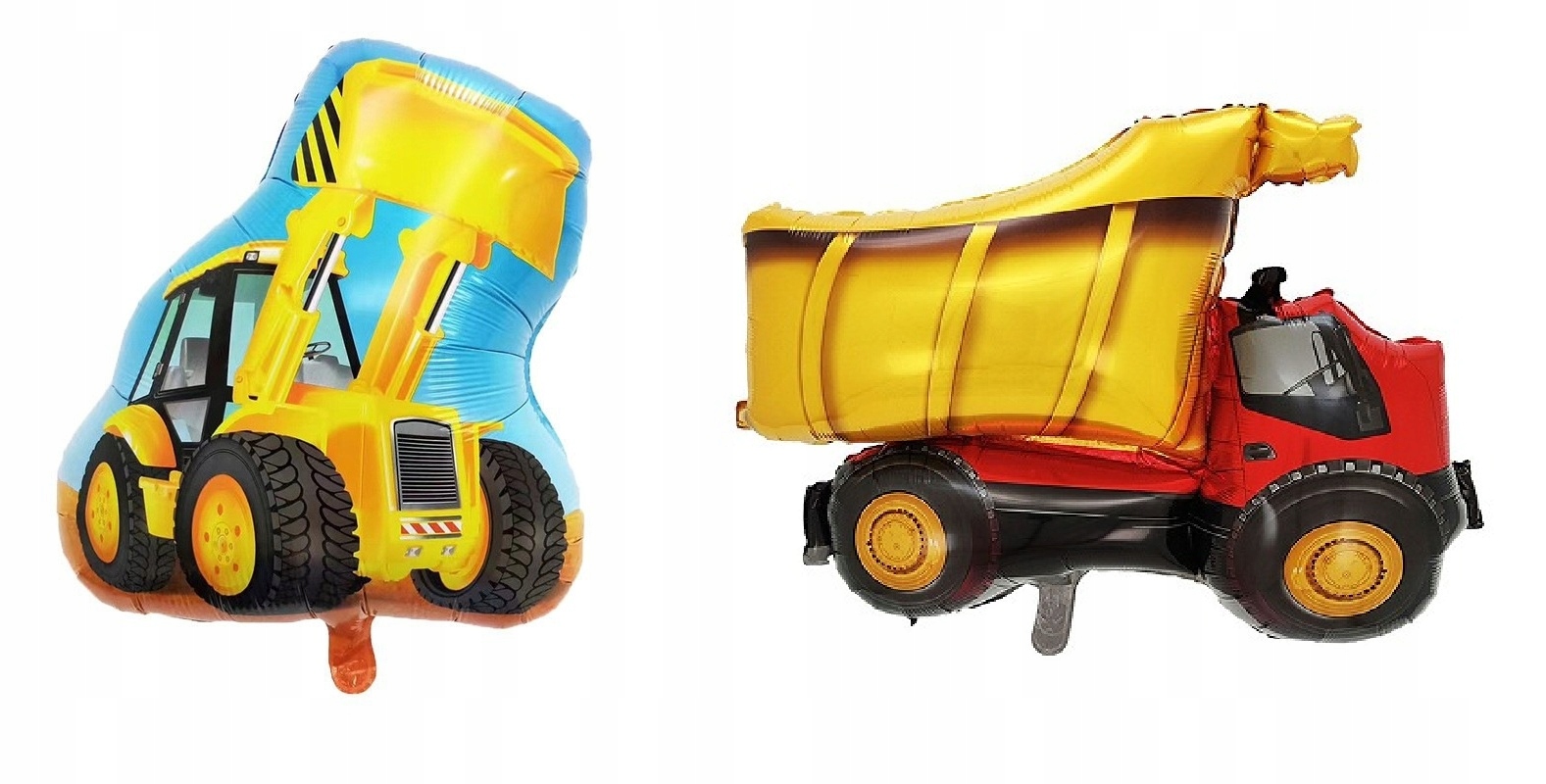 - 2 sztuki Duży balon foliowy – Koparka i Ciężarówka