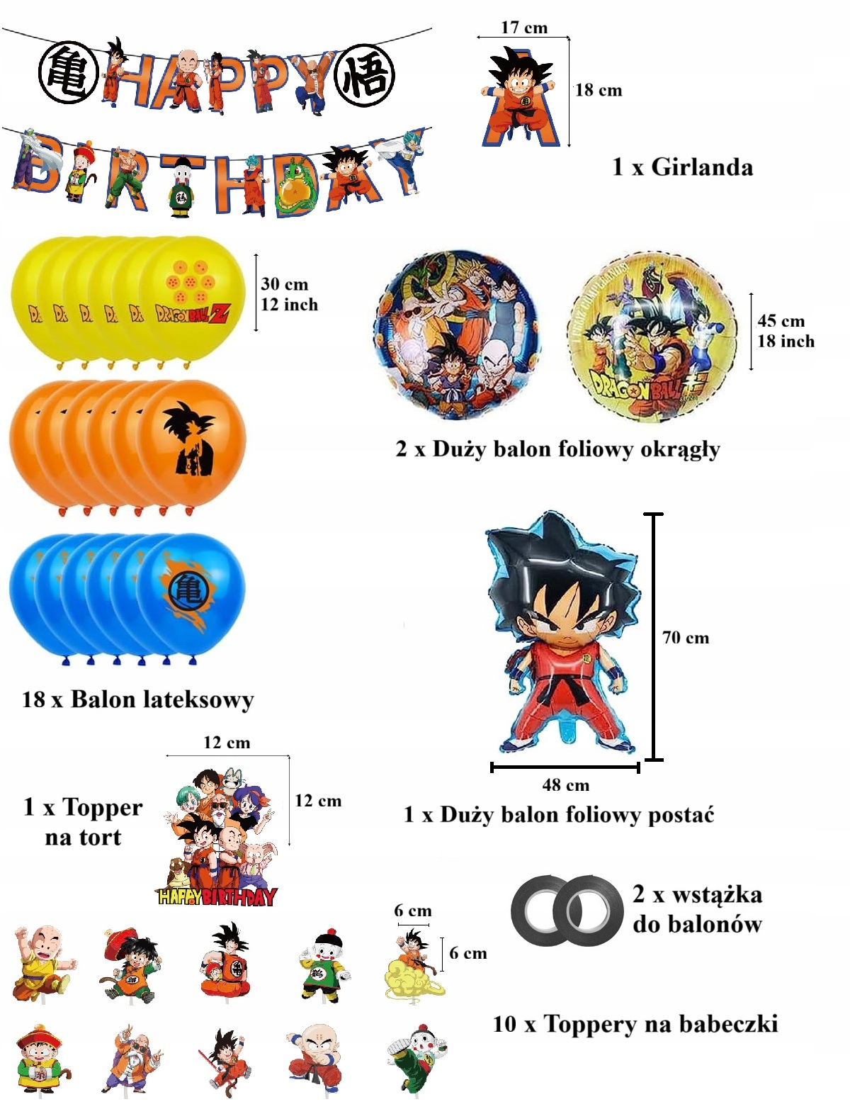 - 18 sztuk balonów lateksowych z nadrukami z motywem Dragon Ball: