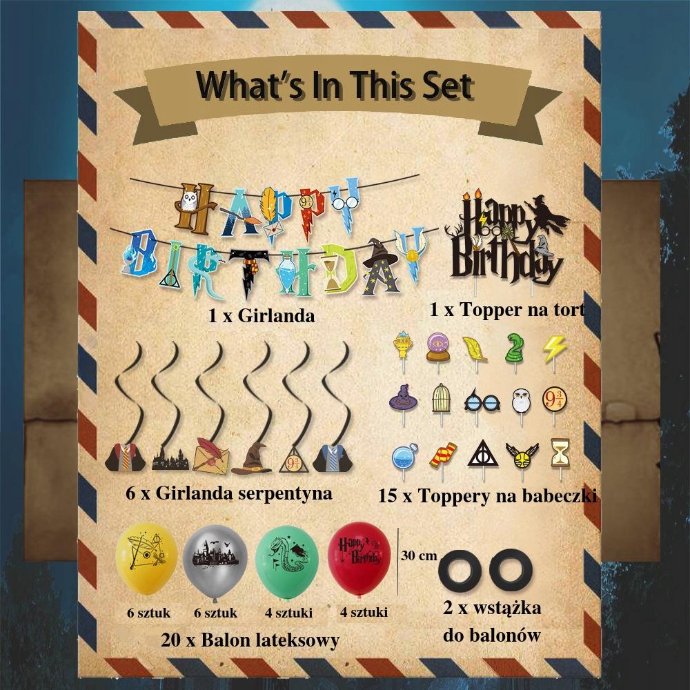 • 1 sztuka girlanda z napisem “Happy Birthday” – z motywami z uniwersum Harry’ego Pottera