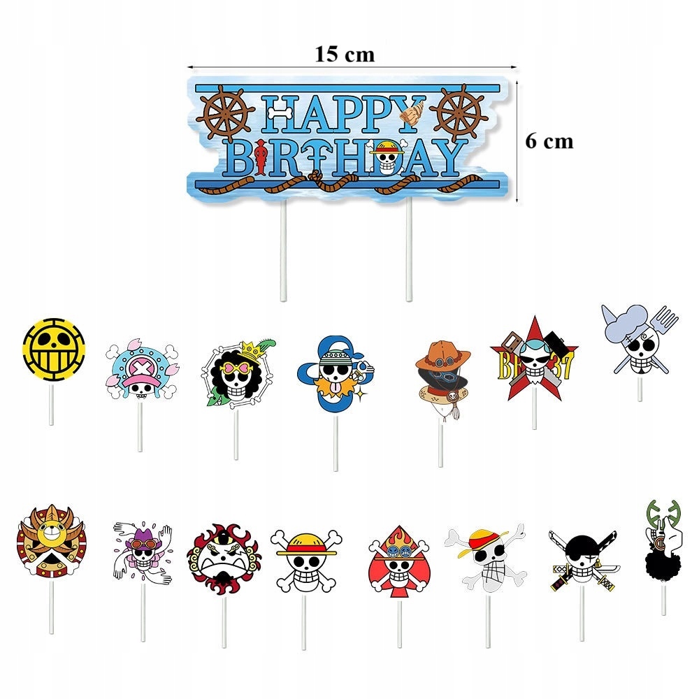 • 15 sztuk topperów na babeczki – motyw One Piece