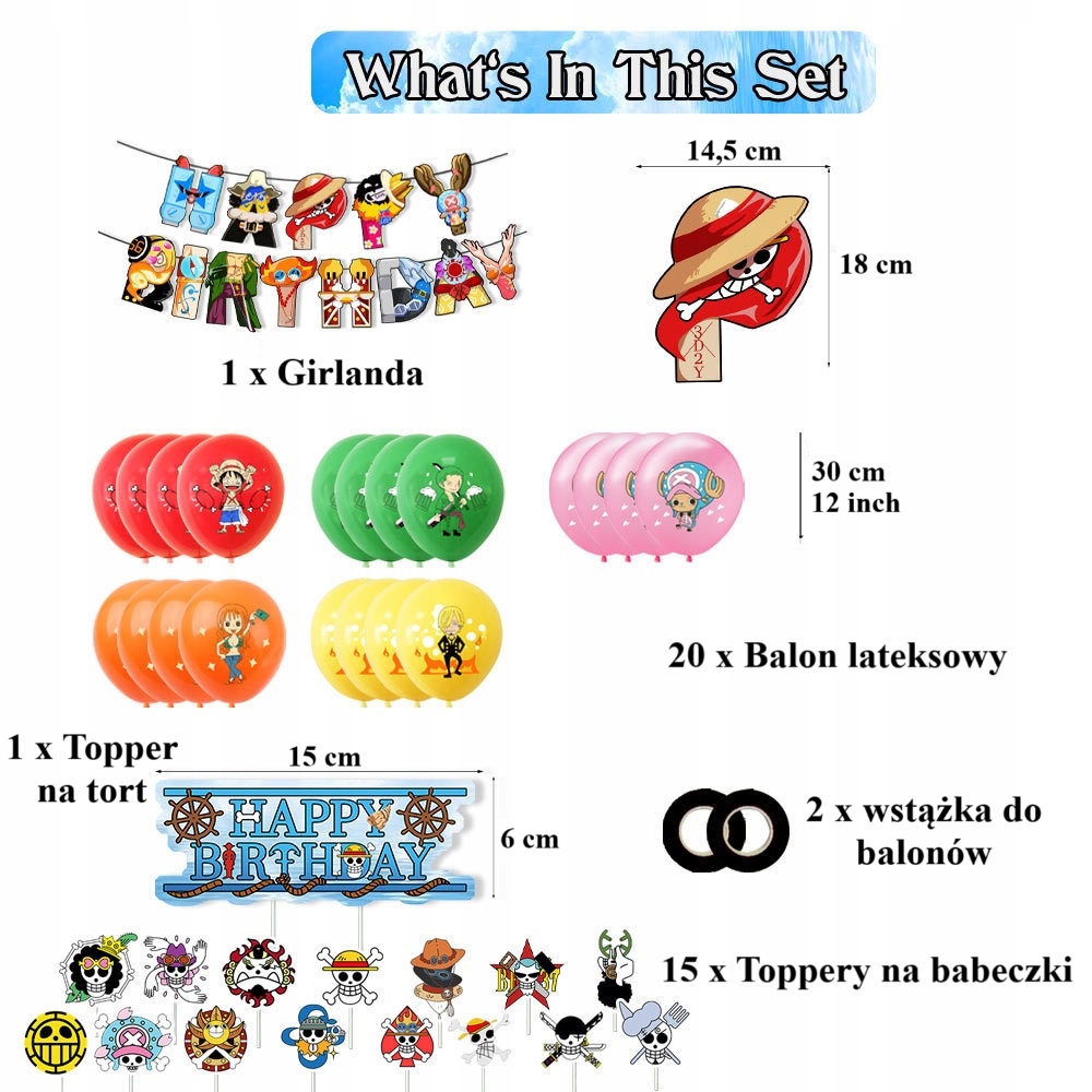 • 20 sztuk balonów lateksowych z nadrukami z motywem One Piece: