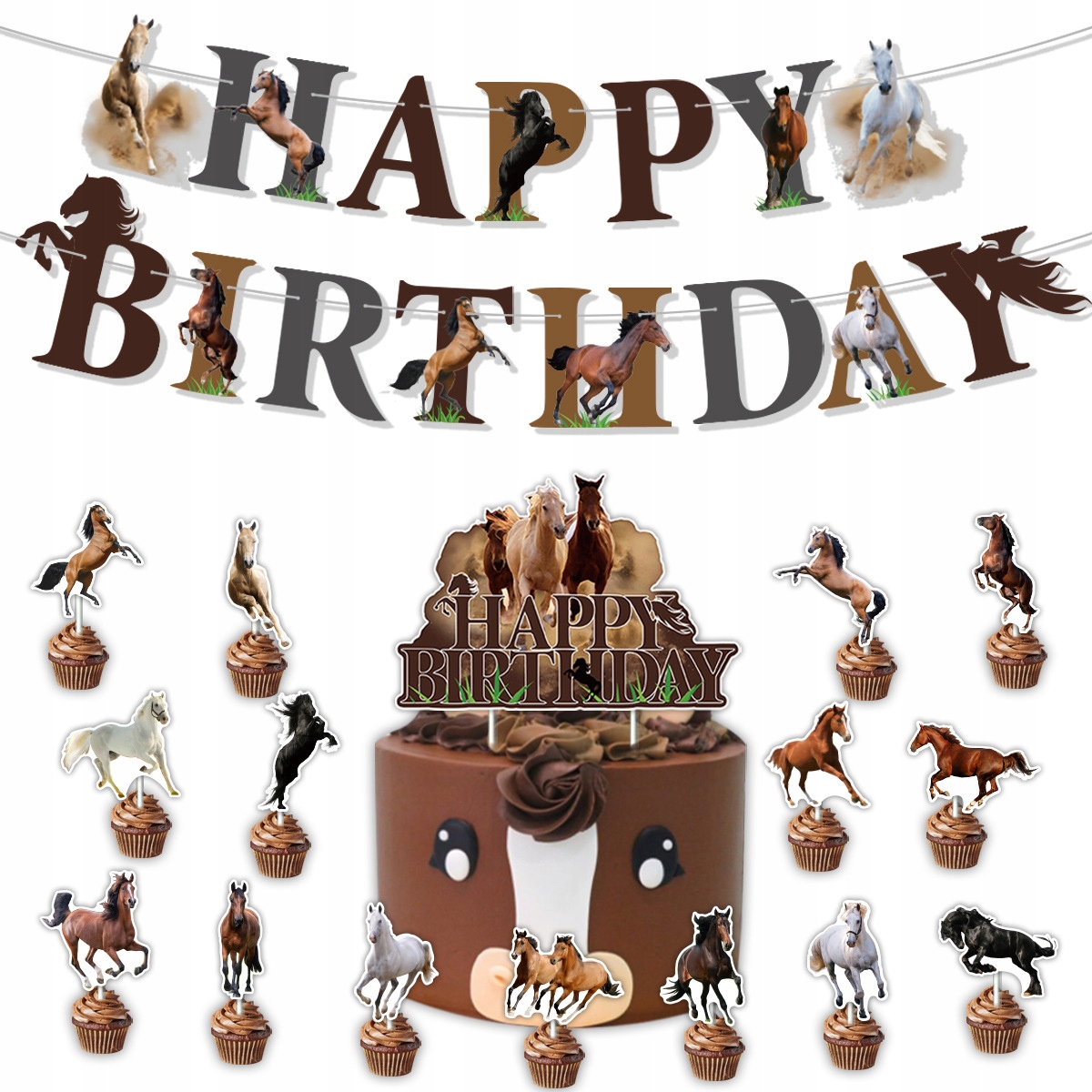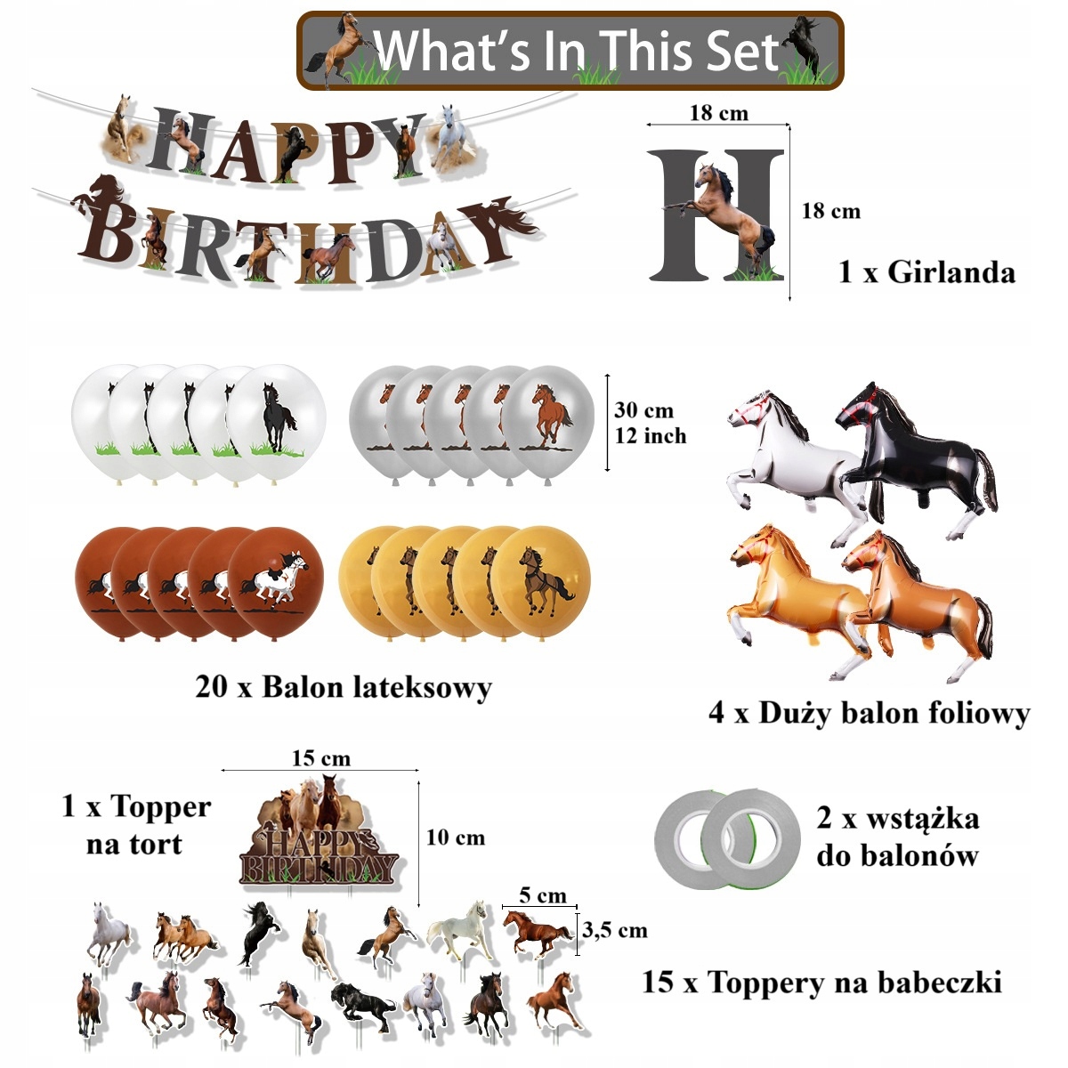 • 1 sztuka girlanda z napisem “Happy Birthday” – z motywami Koni