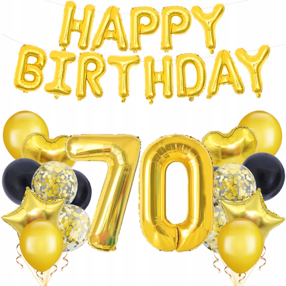 Złoty zestaw XL balonowych dekoracji urodzinowych na 70 urodziny
