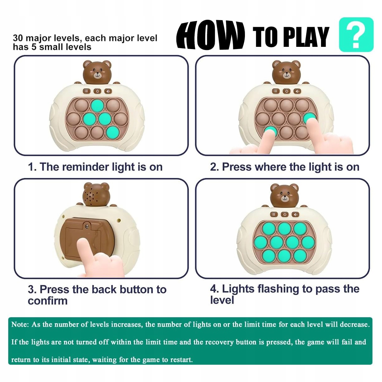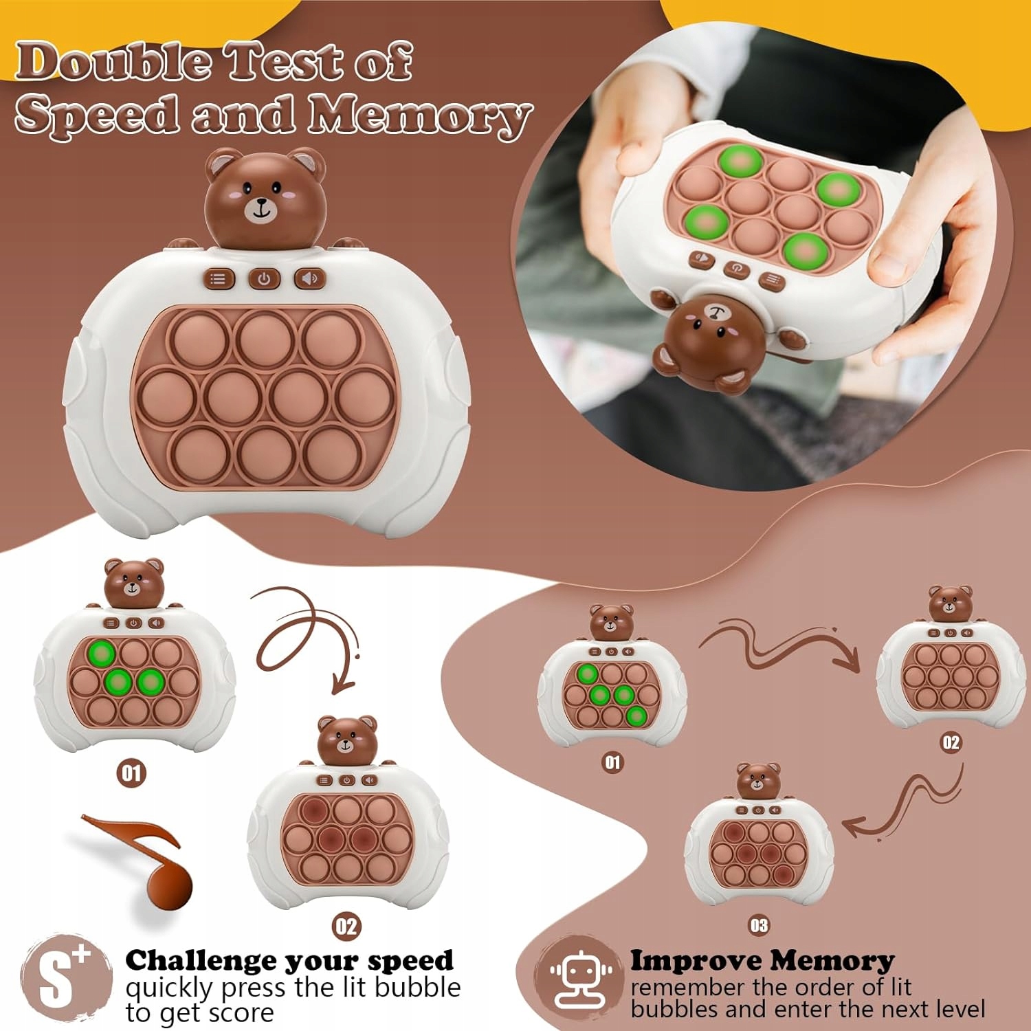 - Nowoczesny design: Elektroniczna gra zręcznościowa POP IT Miś to najnowszy i najbardziej ekscytujący dodatek do świata gier, który zachwyci zarówno dzieci, jak i dorosłych.