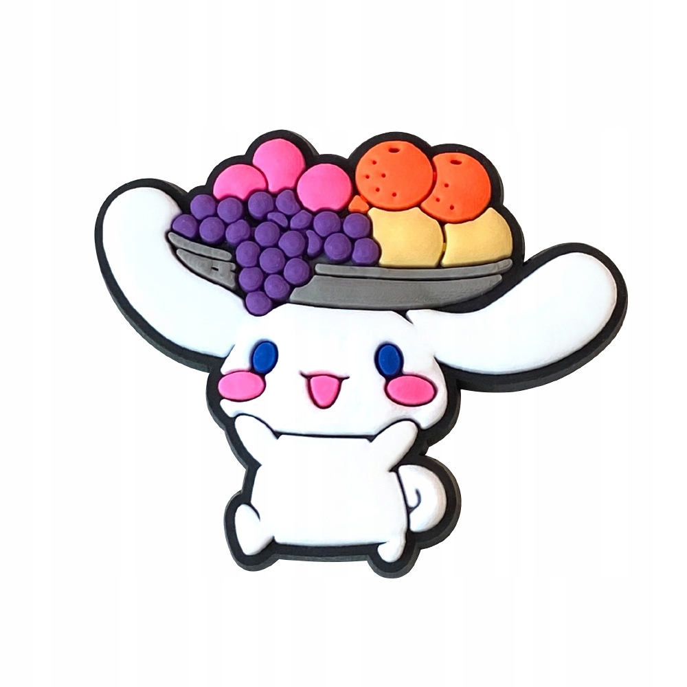 Przypinka Owoce Cinnamoroll Hello Kitty do Crocs. Wykonana z trwałego PVC i żywicy, łatwa do przypięcia, idealna dla fanek kreatywności.