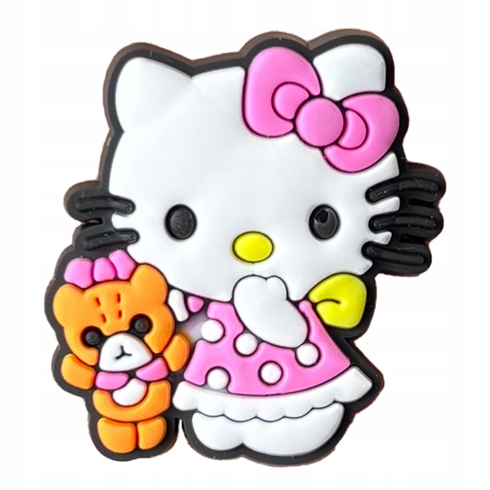 Przypinka Hello Kitty z maskotką do Crocs. Wykonana z trwałego PVC i żywicy, łatwa do przypięcia, idealna dla fanek kreatywności.