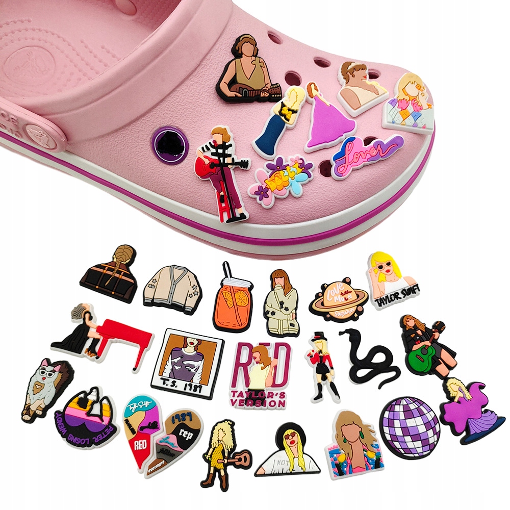 Przypinka Taylor Swift do Crocs, butów, telefonu i plecaka. Stylowa ozdoba PVC, trwała i łatwa w użyciu. Dodaj charakteru swoim akcesoriom!