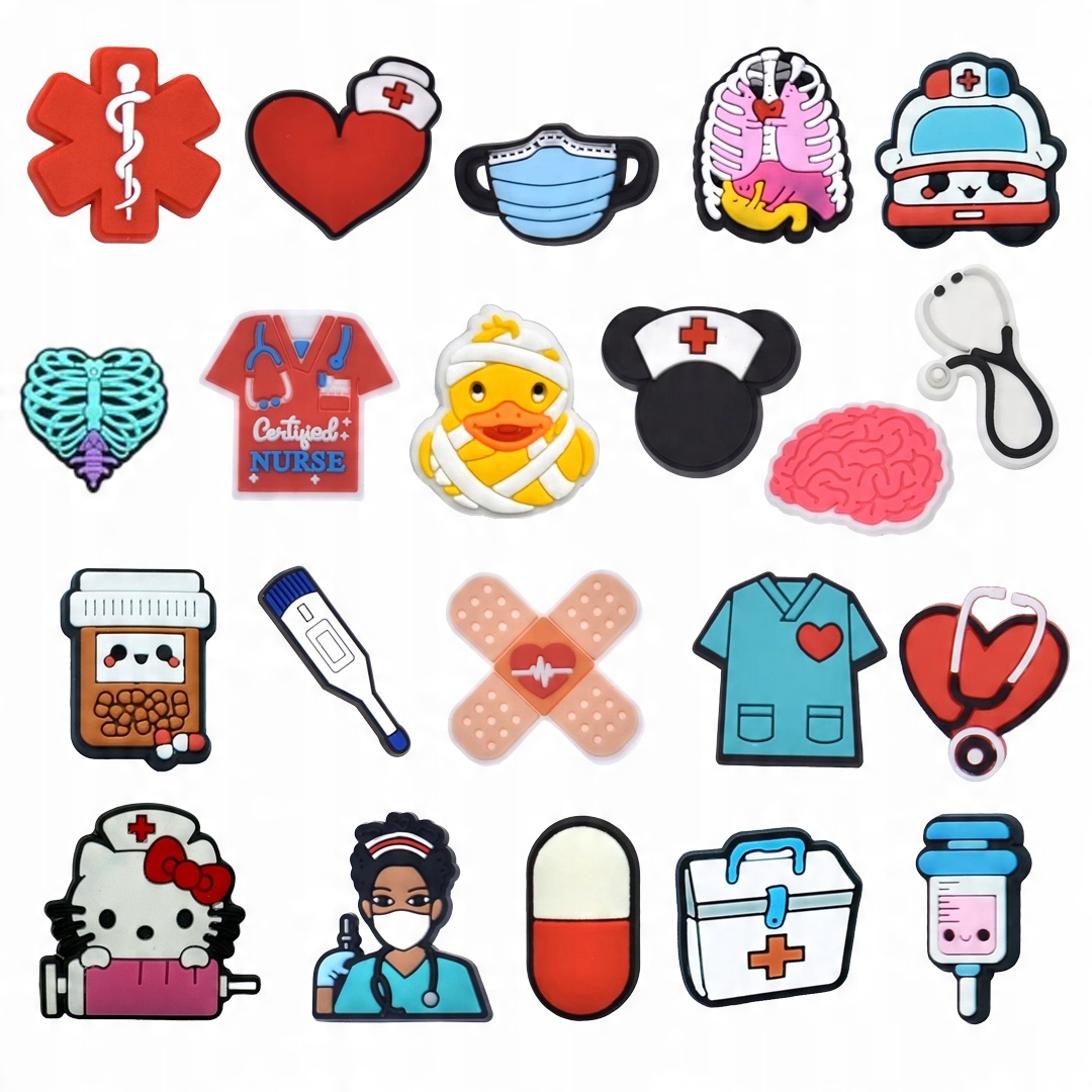 Przypinki do butów Crocs medyczne 21 sztuk. Idealny prezent dla pielęgniarek, lekarzy i studentów medycyny – stylowo i z humorem!