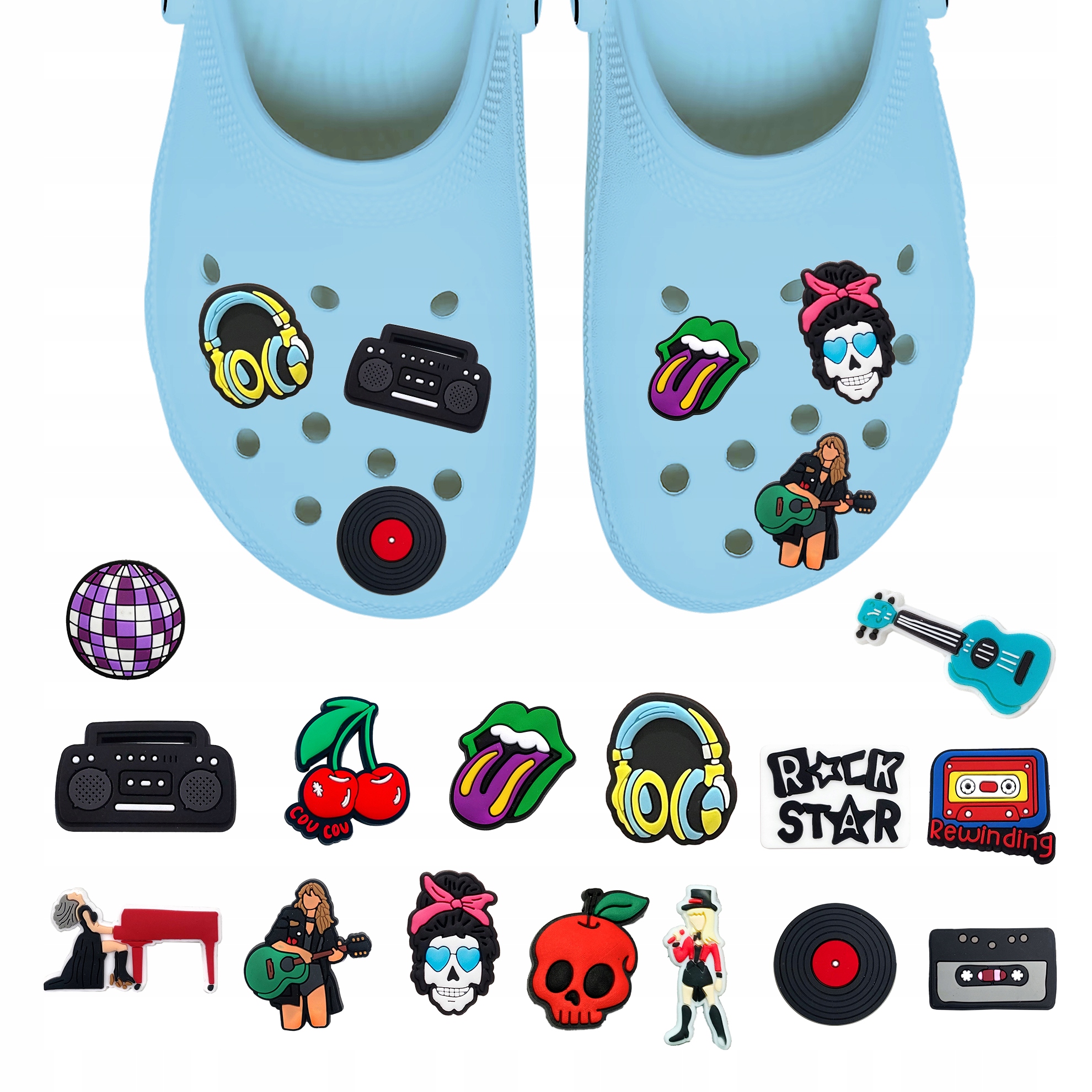 Przypinki do Crocs MUZYKA MUSIC ROCK zestaw 15 sztuk – Idealny na prezent