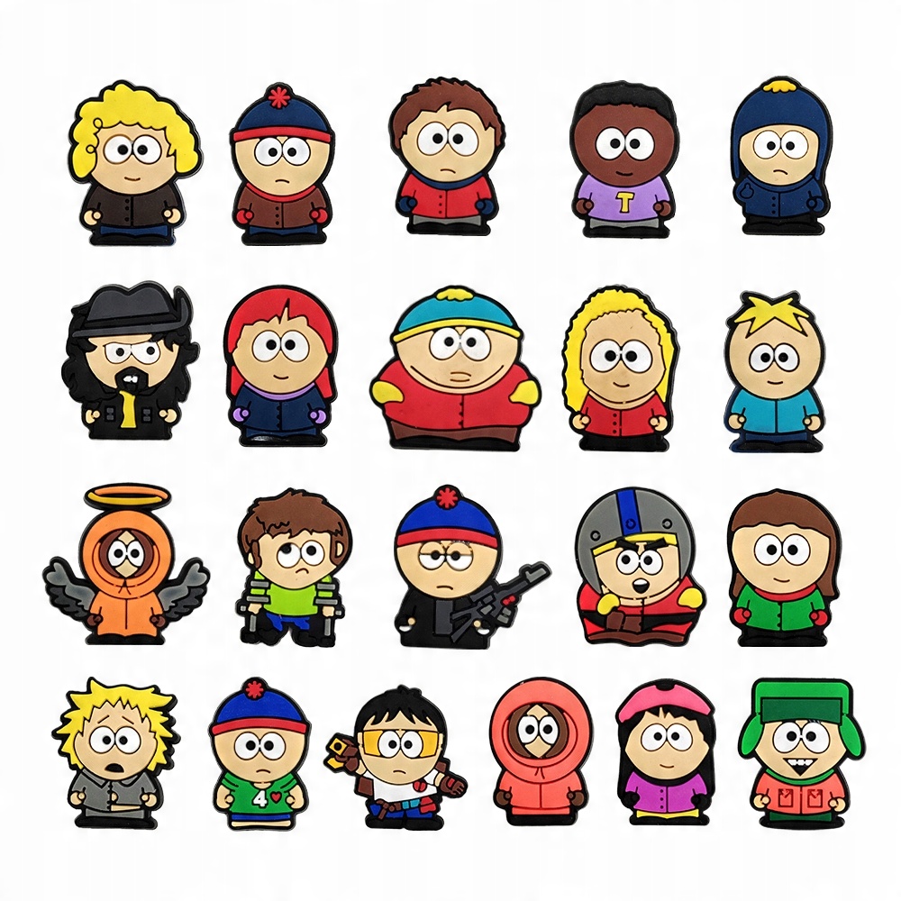 Przypinki do Crocs SOUTH PARK zestaw 21 sztuk! Kolorowe, trwałe i łatwe do montażu ozdoby z ulubionymi postaciami z kreskówki.