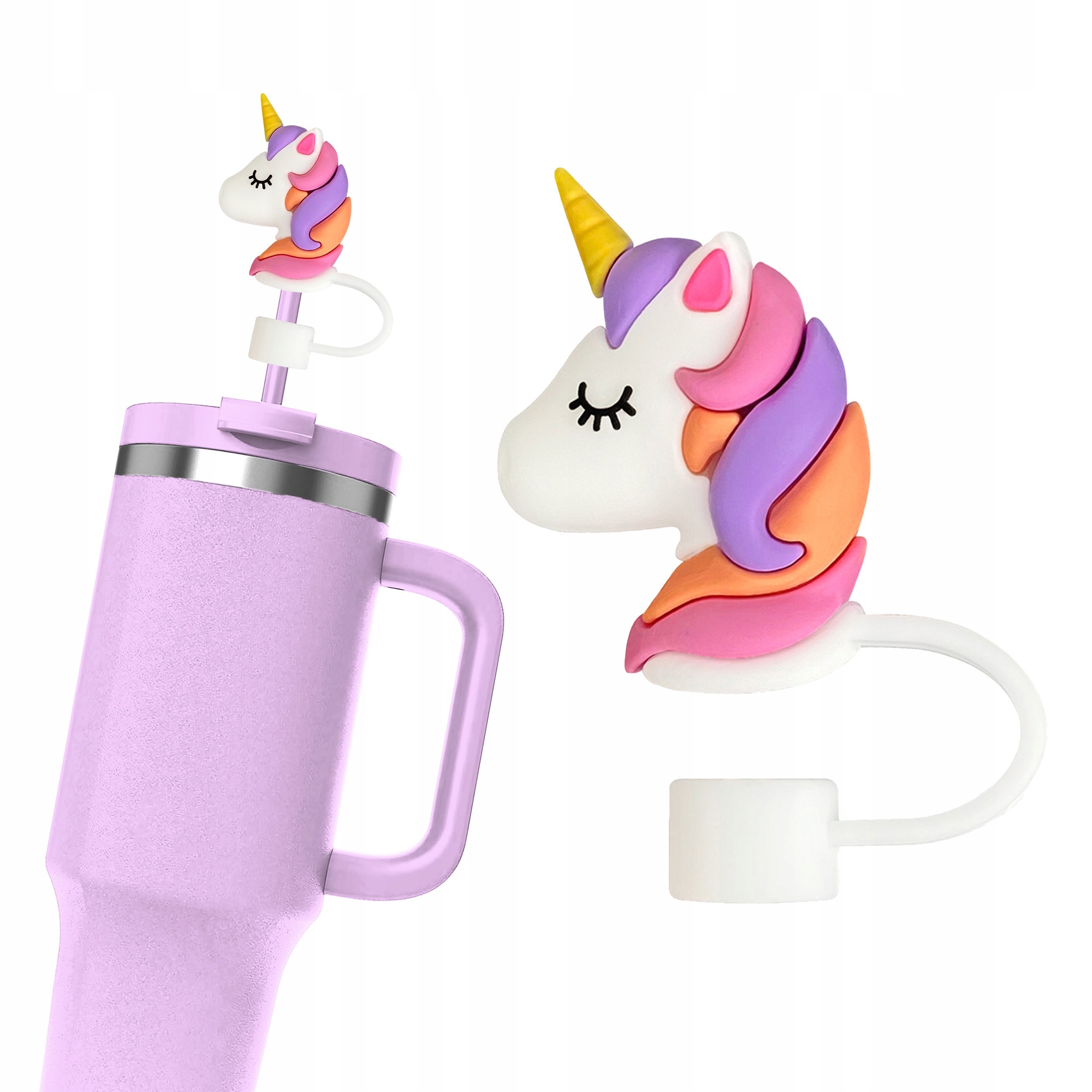 Silikonowa Zatyczka na Słomkę Kubek Stanley JEDNOROŻEC UNICORN – trwała, łatwa do czyszczenia i idealna do ochrony przed kurzem. Doskonała na prezent!