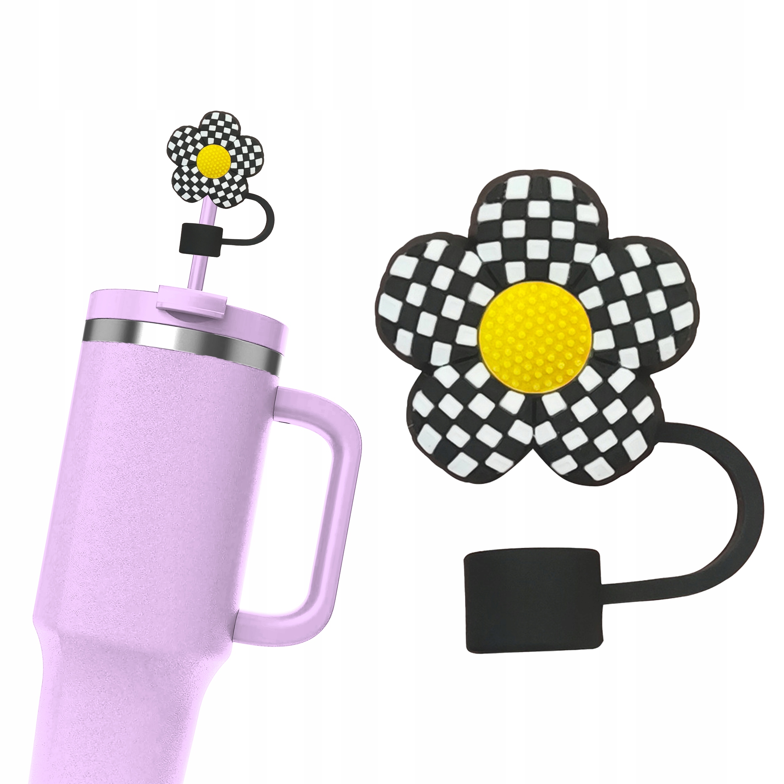 1× Silikonowa Zatyczkana Słomkę Kubek Stanley KWIAT STOKROTKA FLOWERS