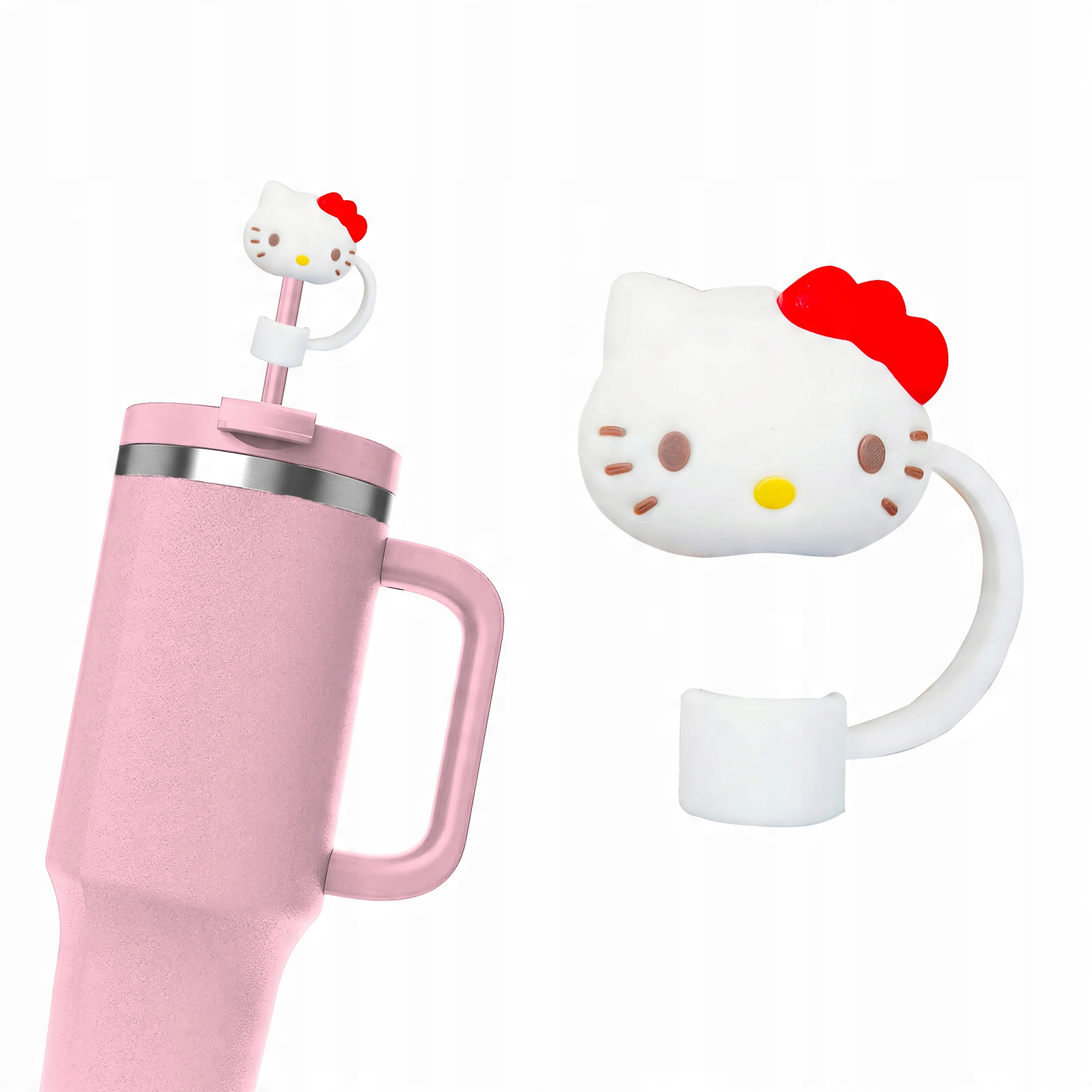 Silikonowa Zatyczka na Słomkę Kubek Stanley HELLO KITTY Kawaii – trwała, łatwa do czyszczenia i idealna do ochrony przed kurzem. Doskonała na prezent!