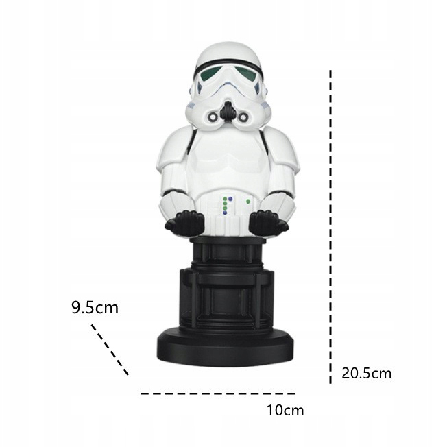Figurka ma wysokość 21 cm i służy jako uchwyt na pad, pada, telefon, a nawet niewielki tablet. Wykonana z wysokiej jakości materiałów, jest stabilna, trwała i pięknie odwzorowuje postać Szturmowca w charakterystycznym, przyjaznym stylu.