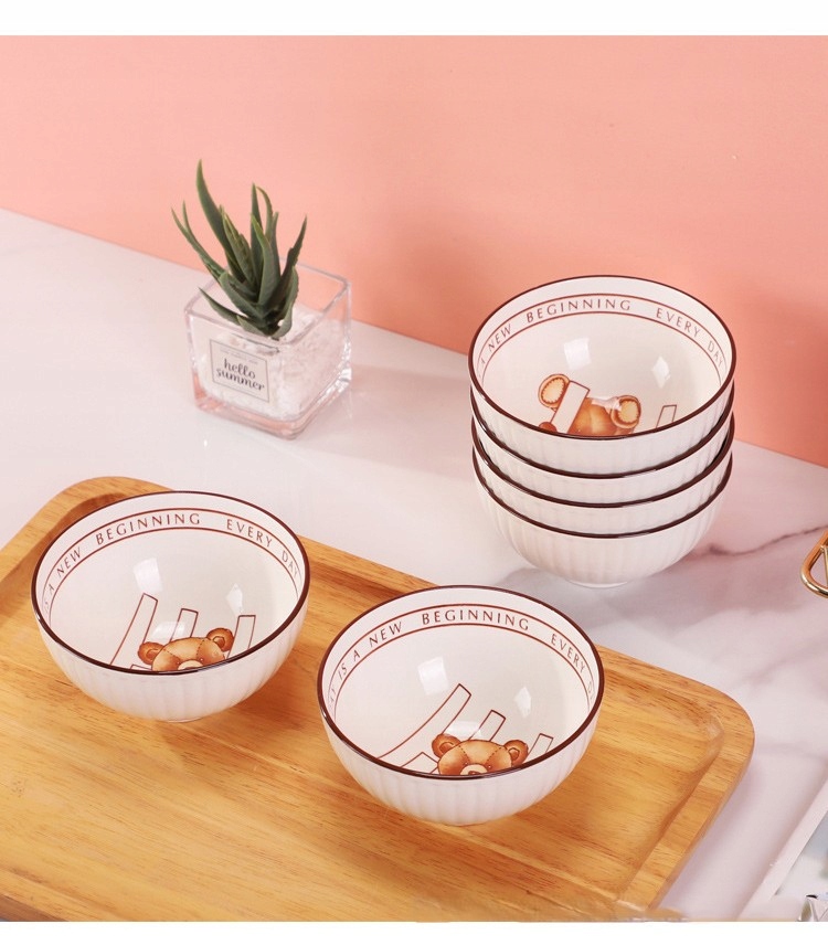 Tableware zestaw 2 misek ceramicznych Miś na ryż zupę płatki 300 ml