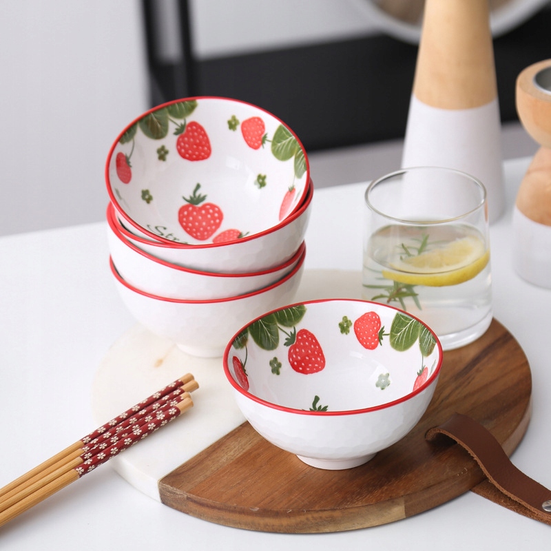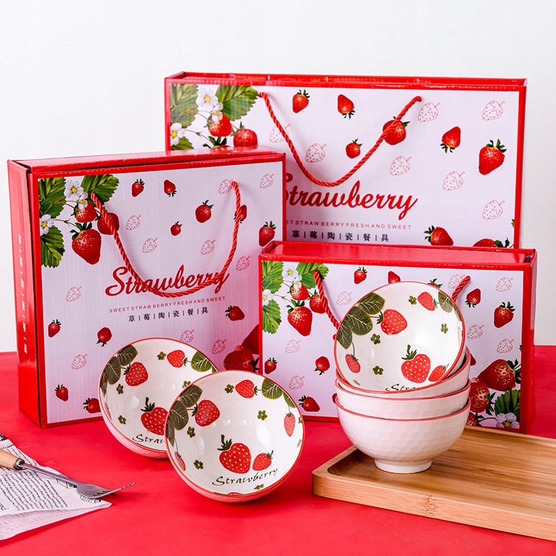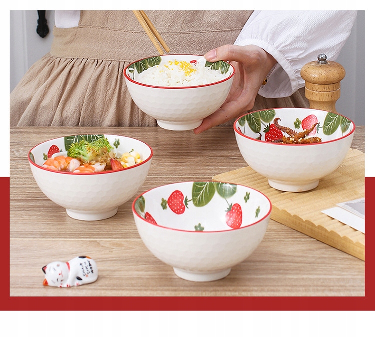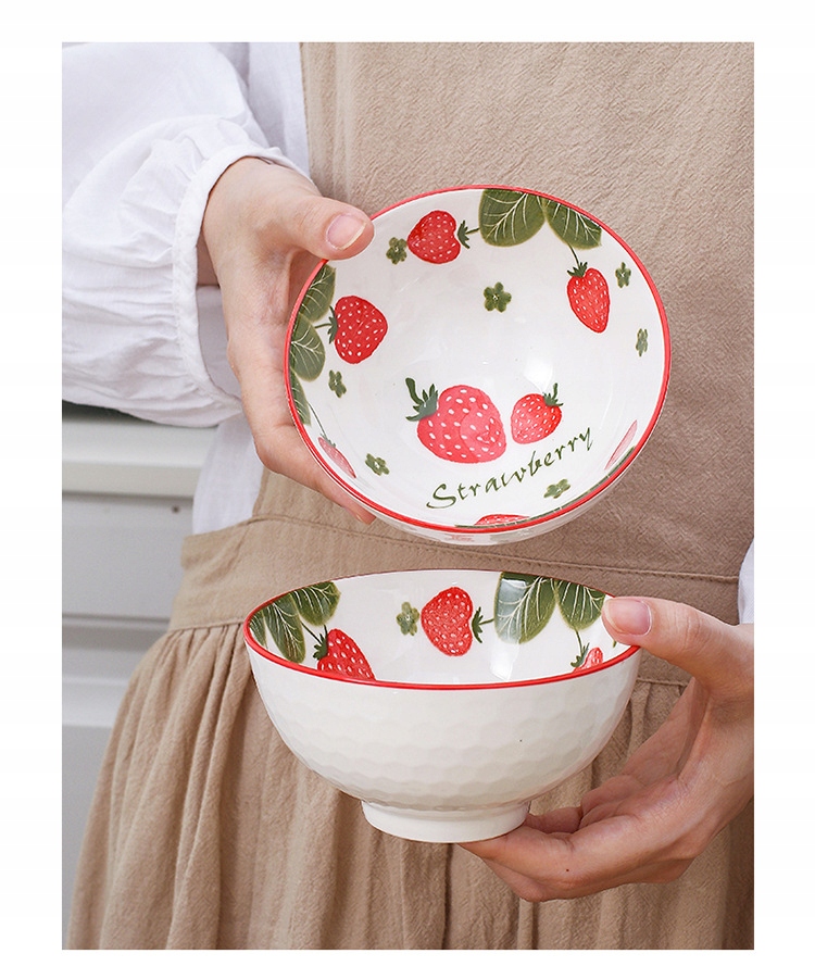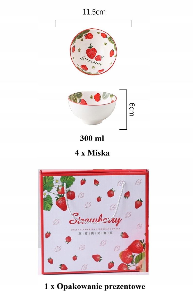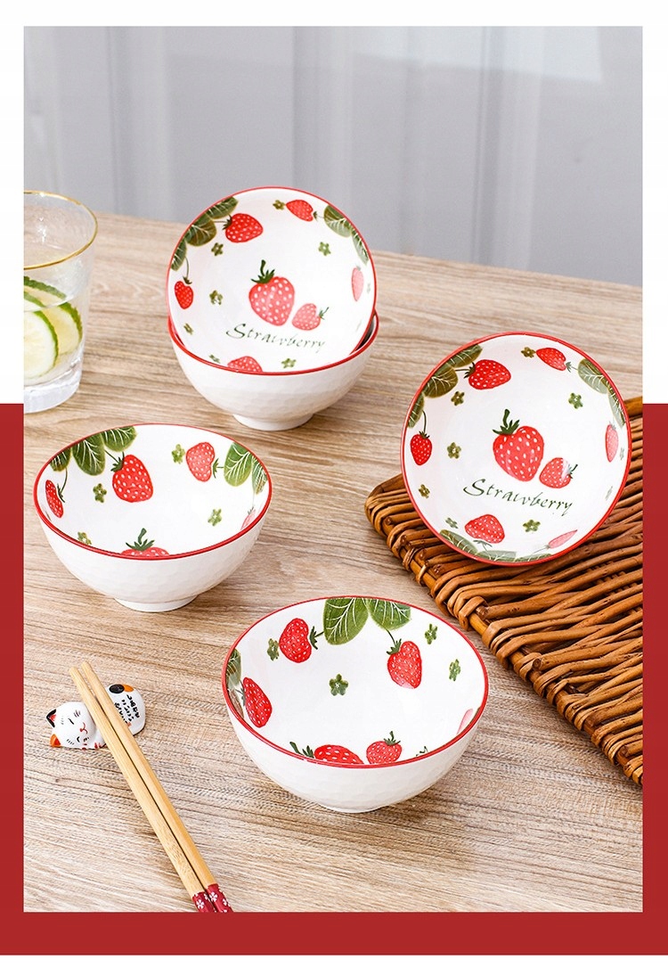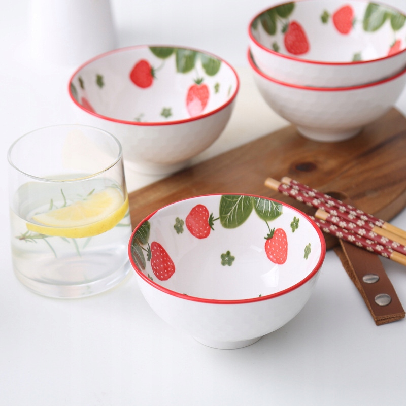 Tableware zestaw 4 misek ceramicznych Truskawki na ryż zupę