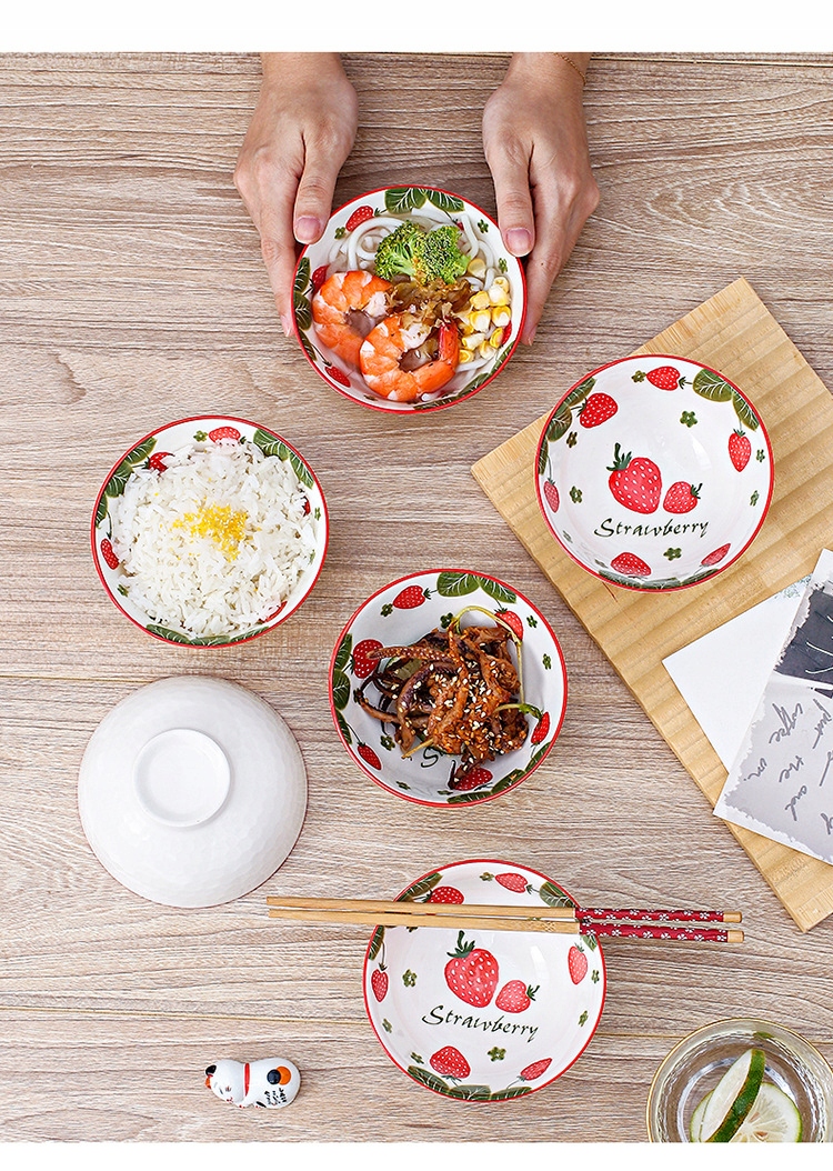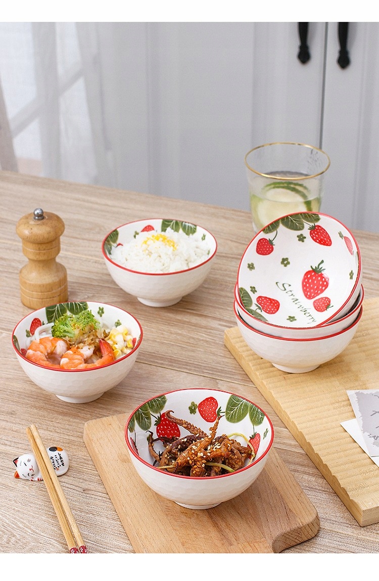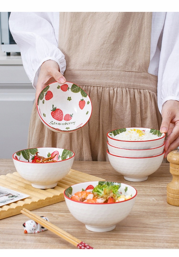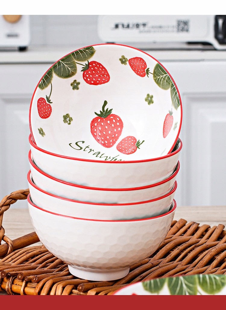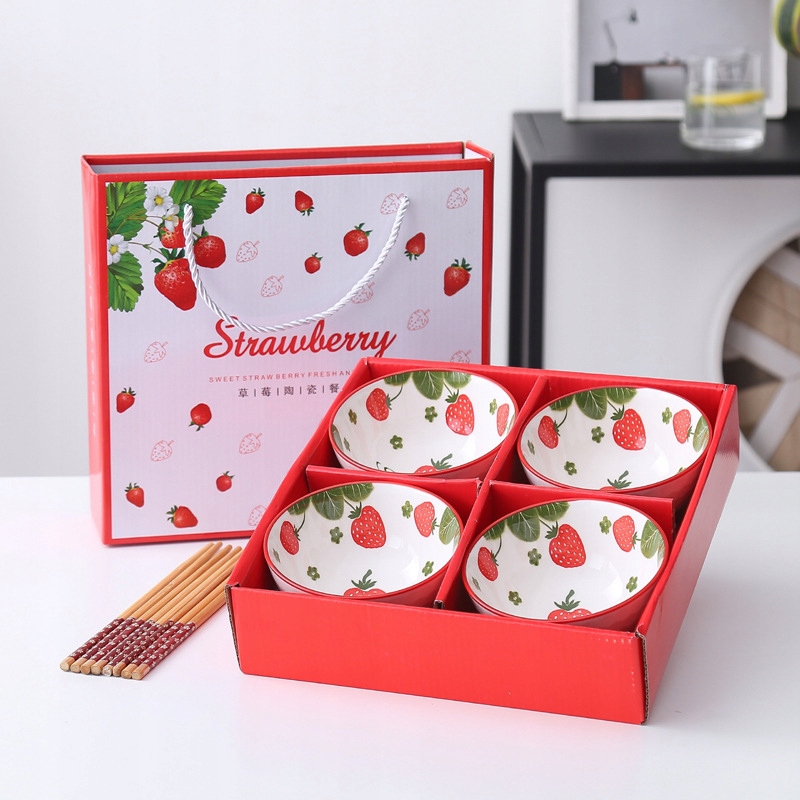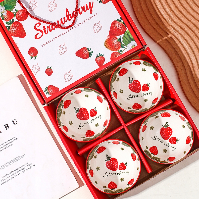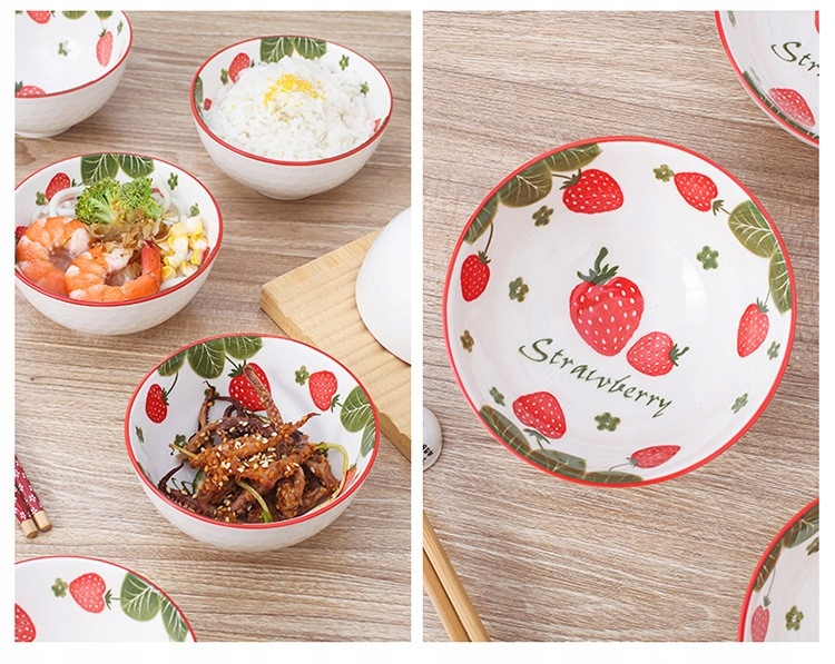 Tableware zestaw 4 misek ceramicznych Truskawki na ryż zupę