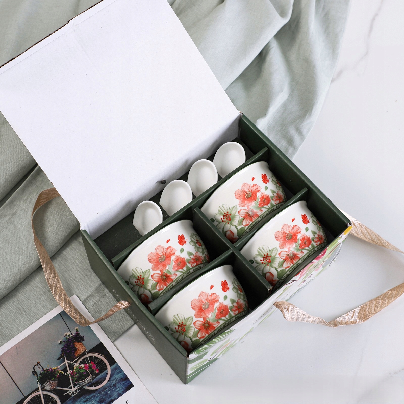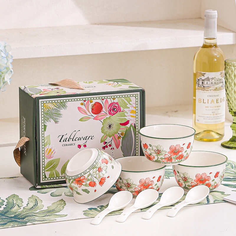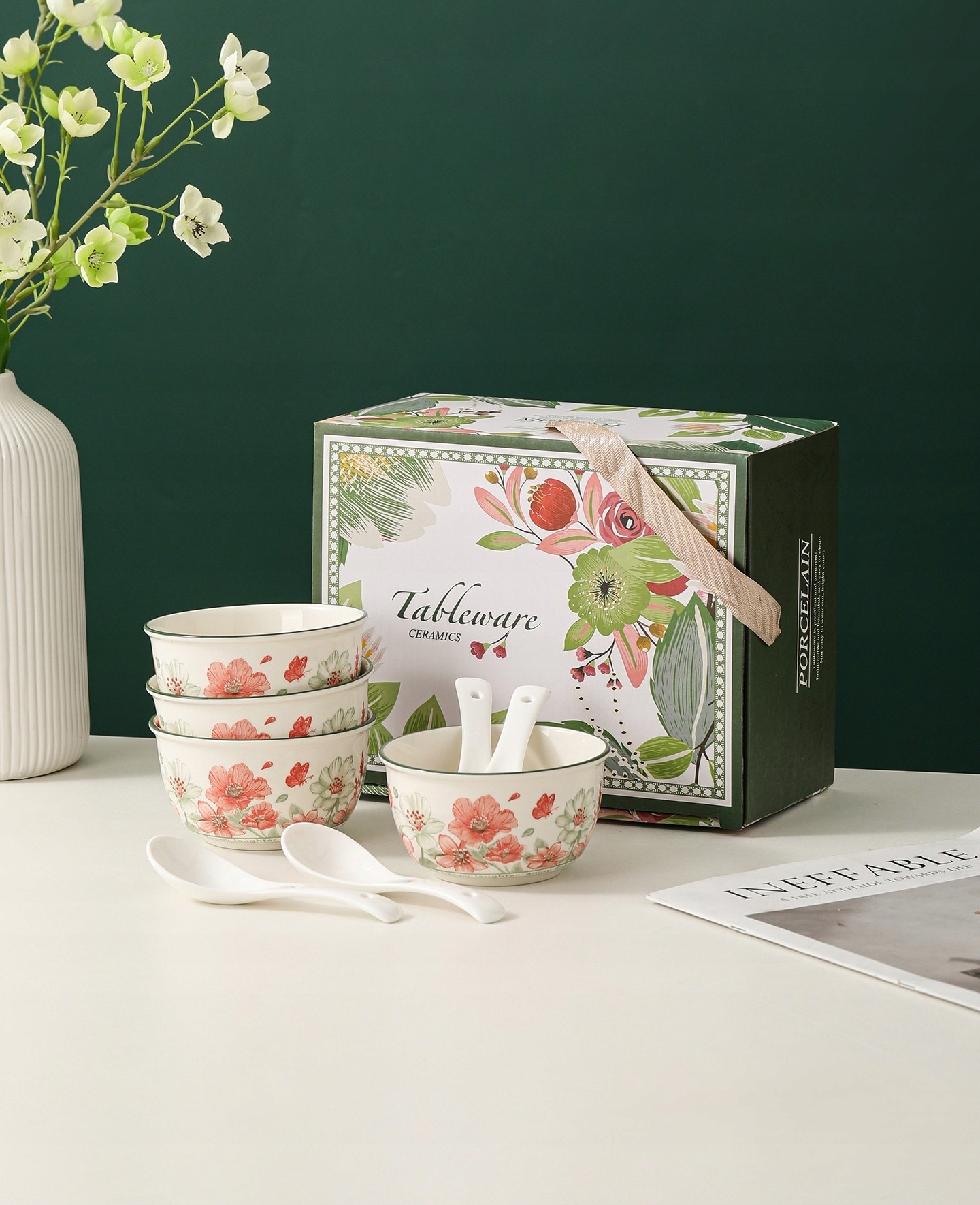 Tableware zestaw 4 misek ceramicznych z łyżkami na ryż zupę