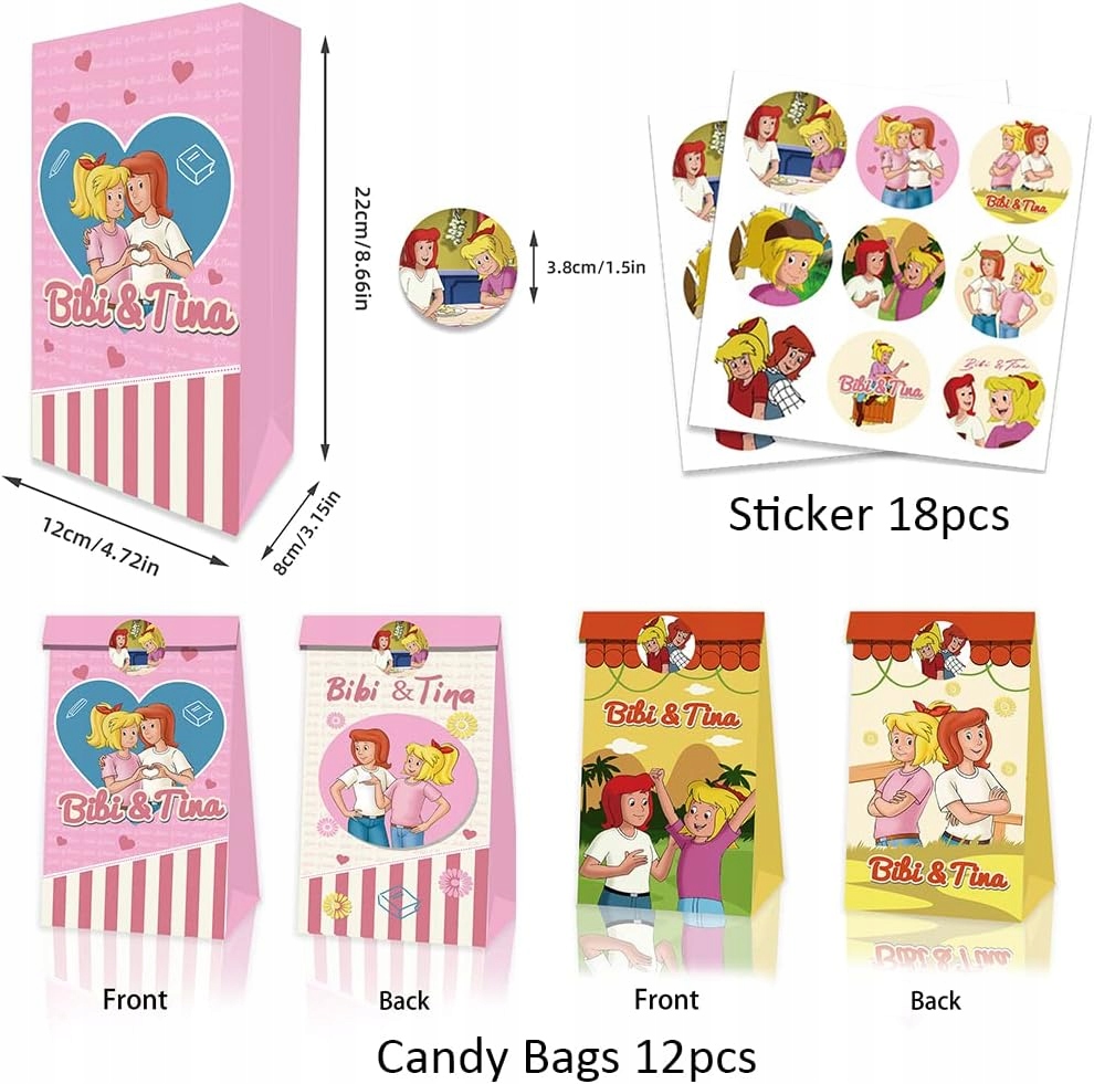 Komplet 12 torebek papierowych z motywem Bibi i Tina + naklejki