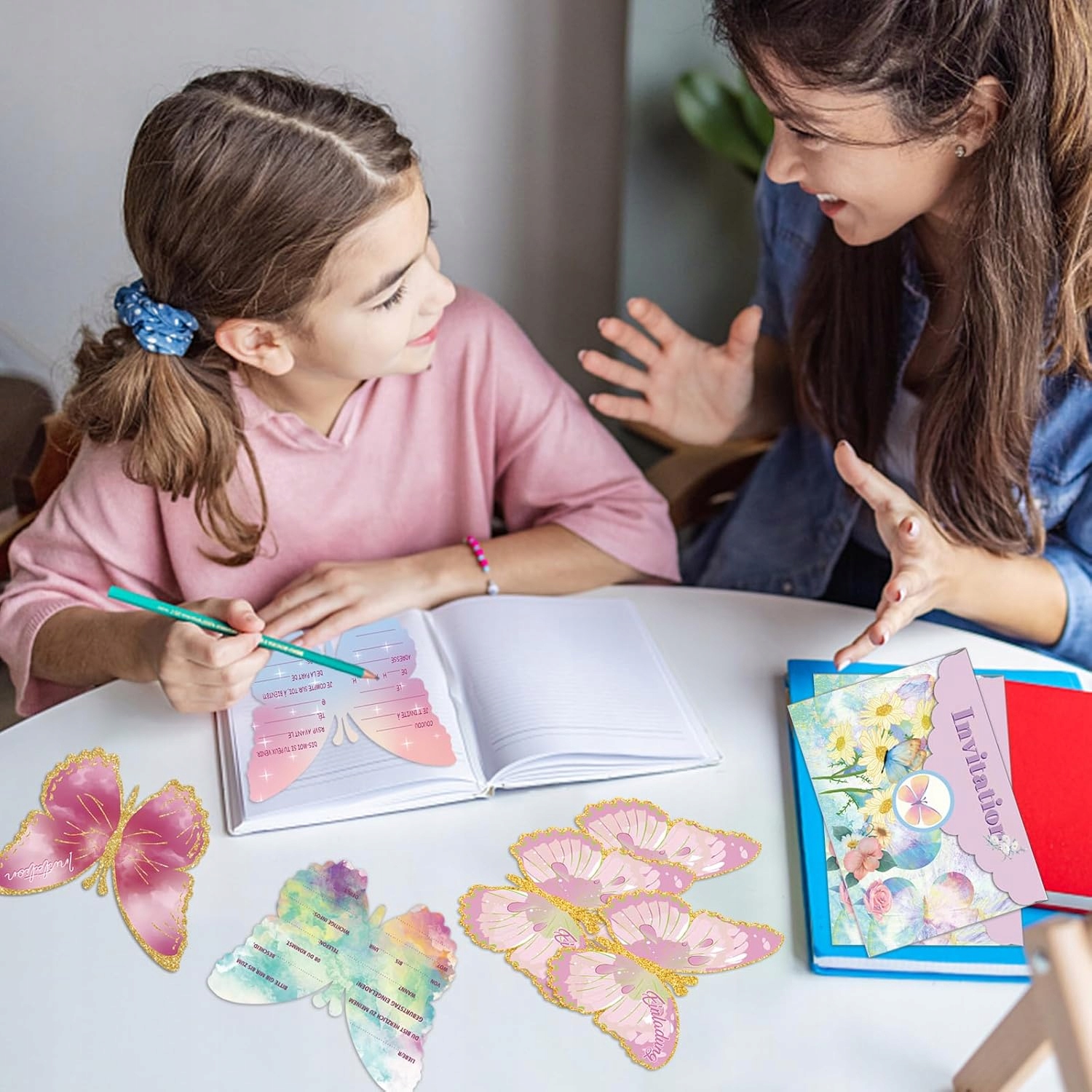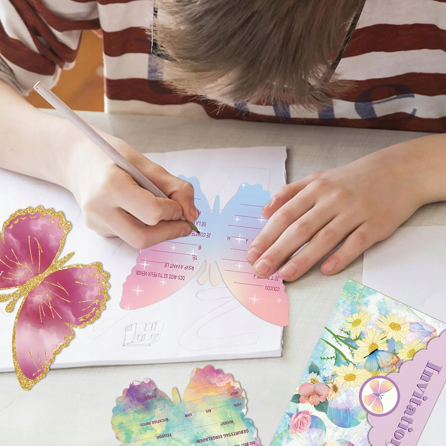 Jedyne w swoim rodzaju wzornictwo: Zaproszenia są zaprojektowane z uroczym motywem motyla, który spodoba się zarówno dzieciom, jak i dorosłym. Załączone koperty są utrzymane w popularnych kolorach, aby nadać całemu wyglądowi dodatkową świąteczność. To jedyne w swoim rodzaju wzornictwo sprawia, że zaproszenia staną się niezapomnianym elementem Twojej imprezy.