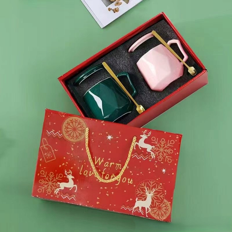Zestaw 2 Kubków Różowy i Zielony 350 ml na prezent świąteczny